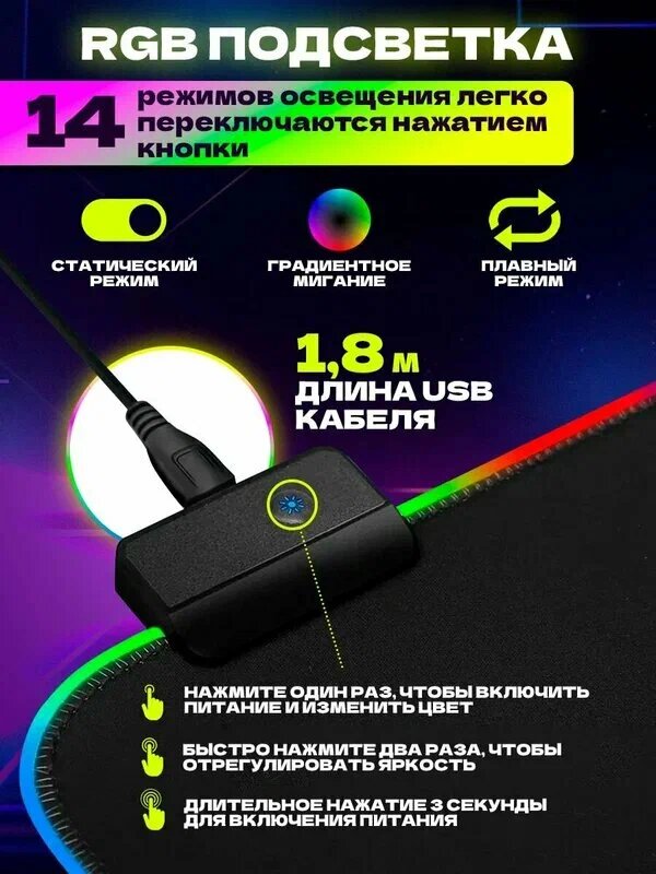 Купить Коврик RGB, игровой, RGB-подсветкой
