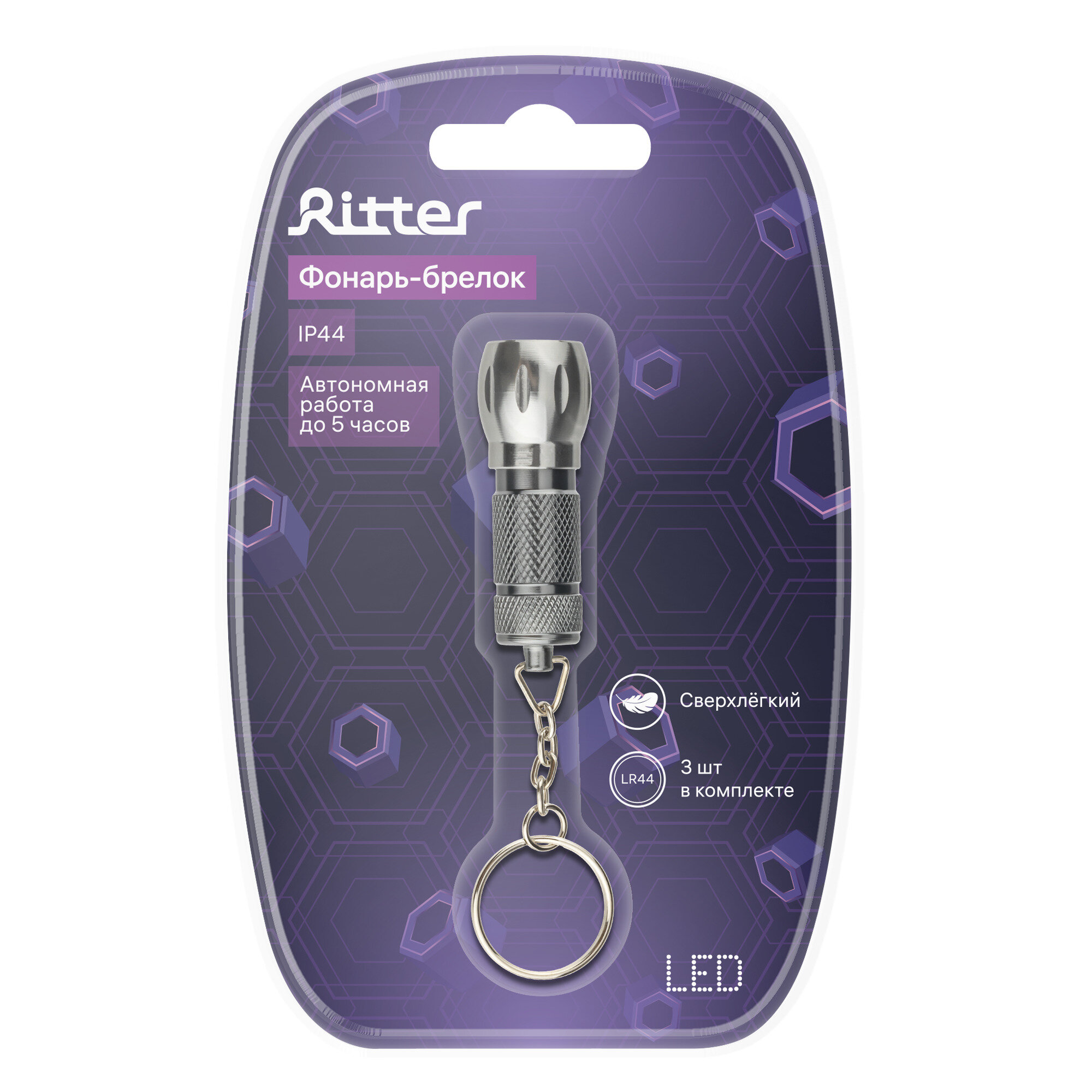 29057 5 Фонарь-брелок, ручной, на батарейках, сверхлегкий, LR44x3, 20Лм, IP32, 29057 5, Ritter, цена за 1 шт.