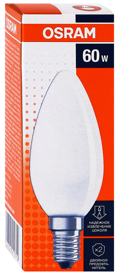 Лампа накаливания осрам свеча Е-14 60Вт матовая 4008321410719