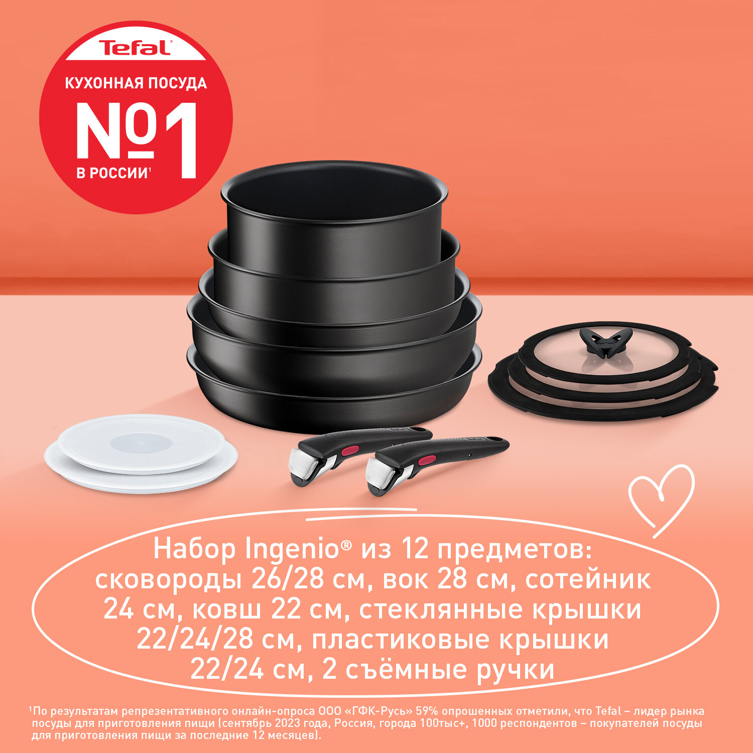 СохранитьНабор посуды Tefal Ingenio Exception Noir со съемной ручкой, подходит для всех типов плит, включая индукционные, Франция интересное: