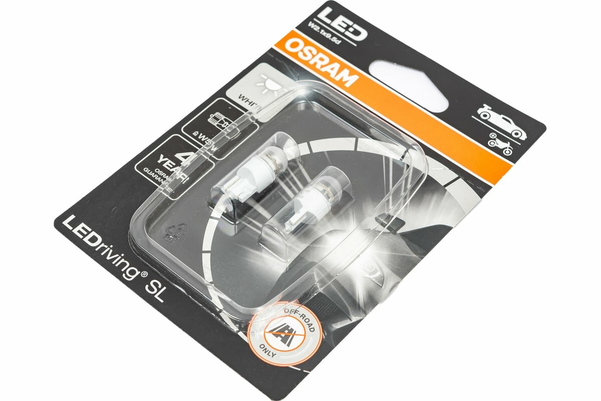 Лампа светодиодная Osram LEDriving SL W5W (W2.1x9.5d, T10), 12В, 0.8Вт (соответствует 5Вт), 6000К, комплект 2 шт