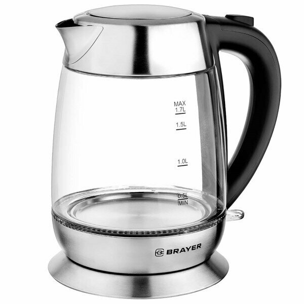 Чайник электрический BRAYER BR1010, стекло, 1.7 л, 2200 Вт, автоотключение, серебристый