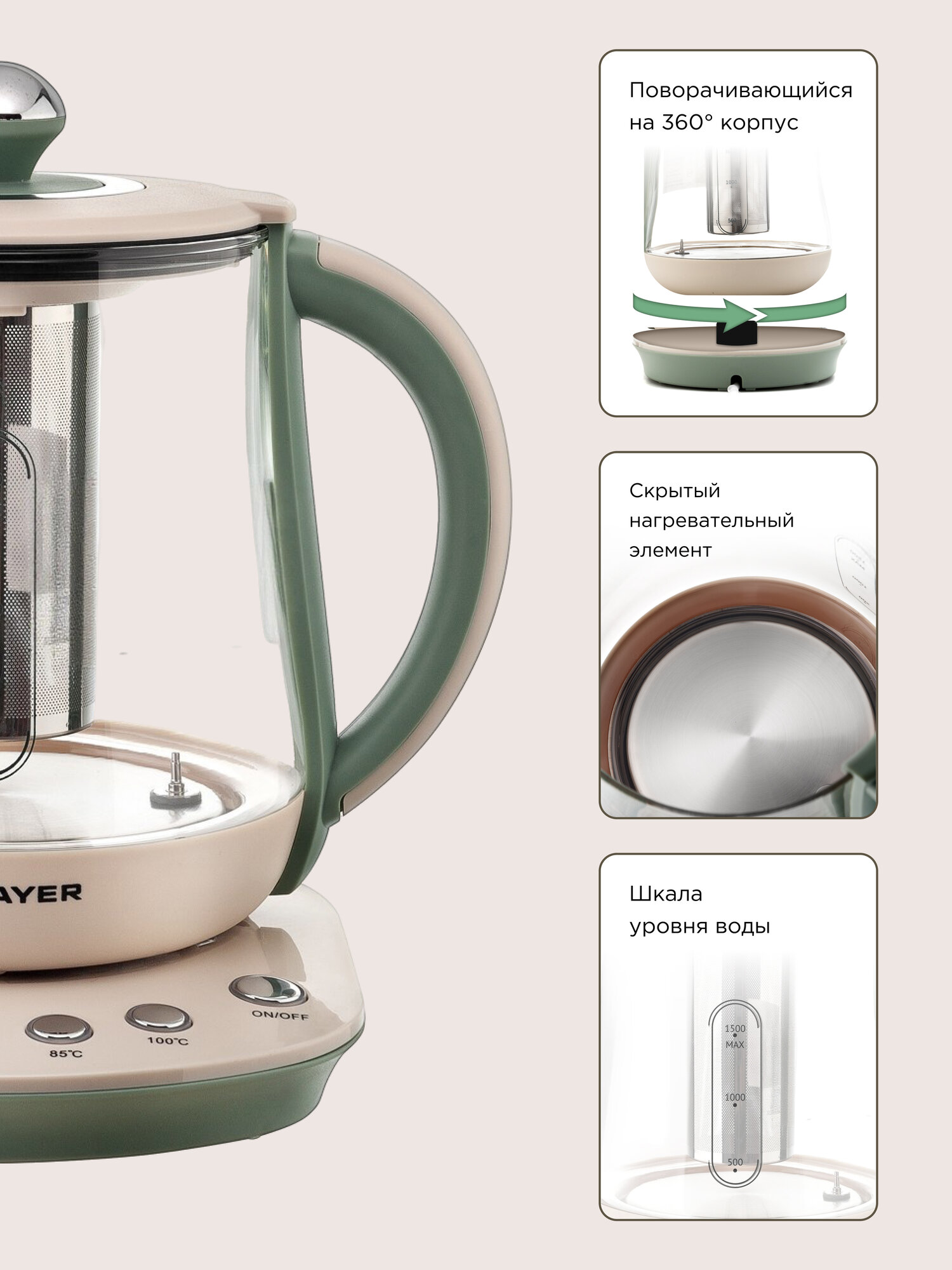 Чайник с терморегулятором и заварником BRAYER BR1015, 1.5 л, 2200 Вт