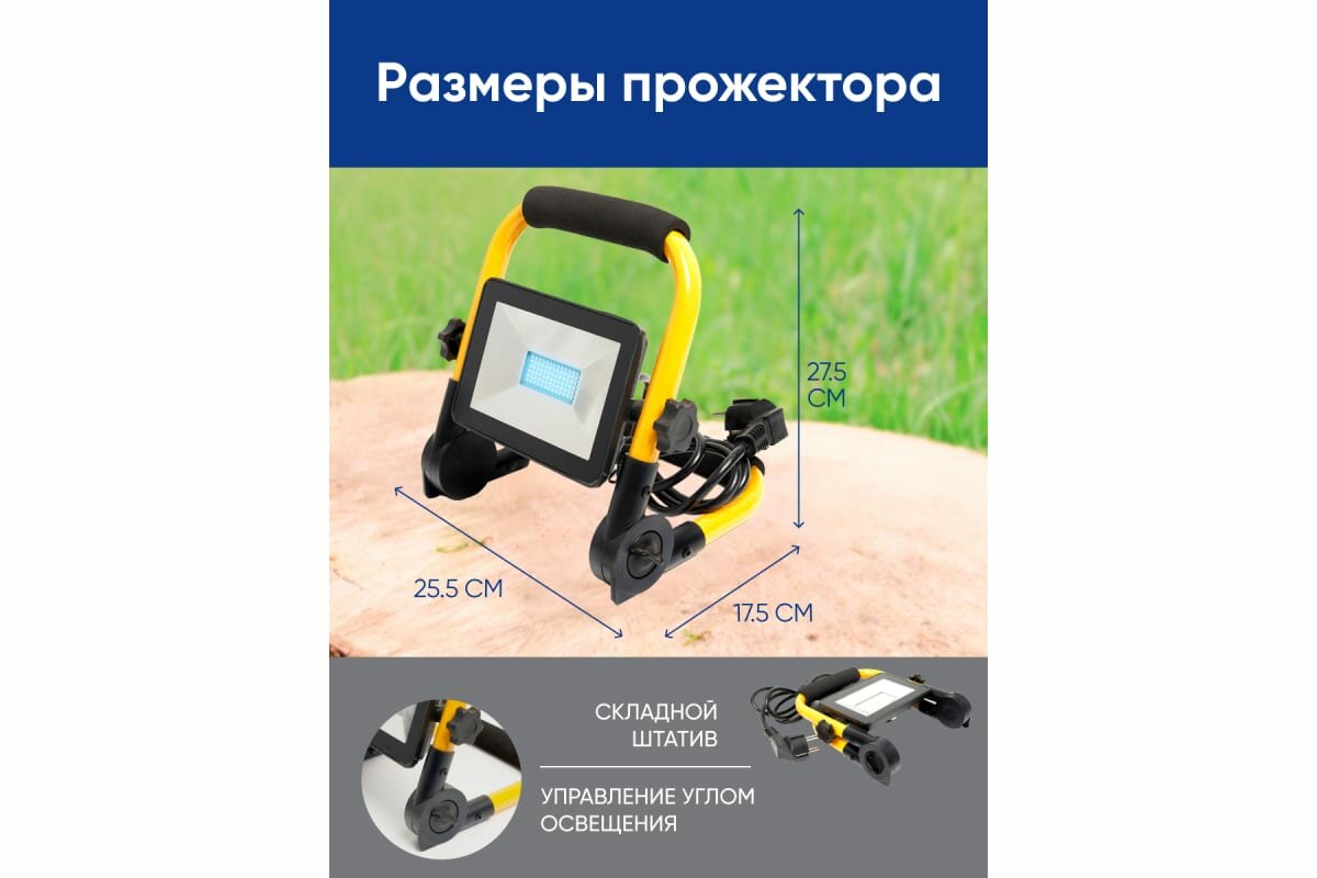 Прожектор переносной, 50W, 6400K, SMD2835, 4000Lm, IP65, LL-513