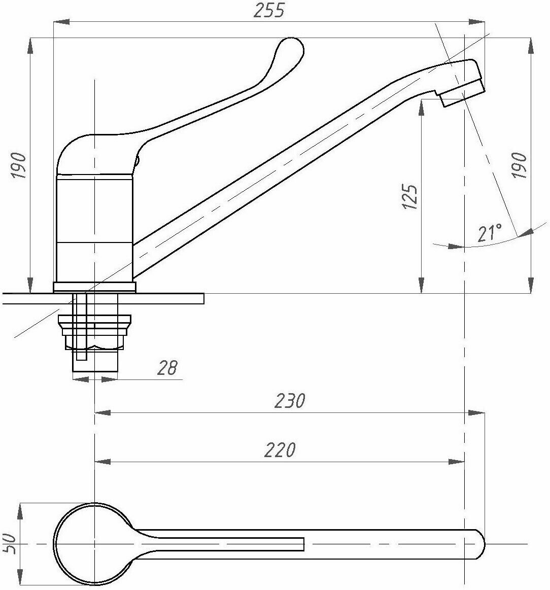 ПрофСан ПСМ-425-КТ/055, Смеситель шаровый для кухни (40мм, на гайке, хирургический)