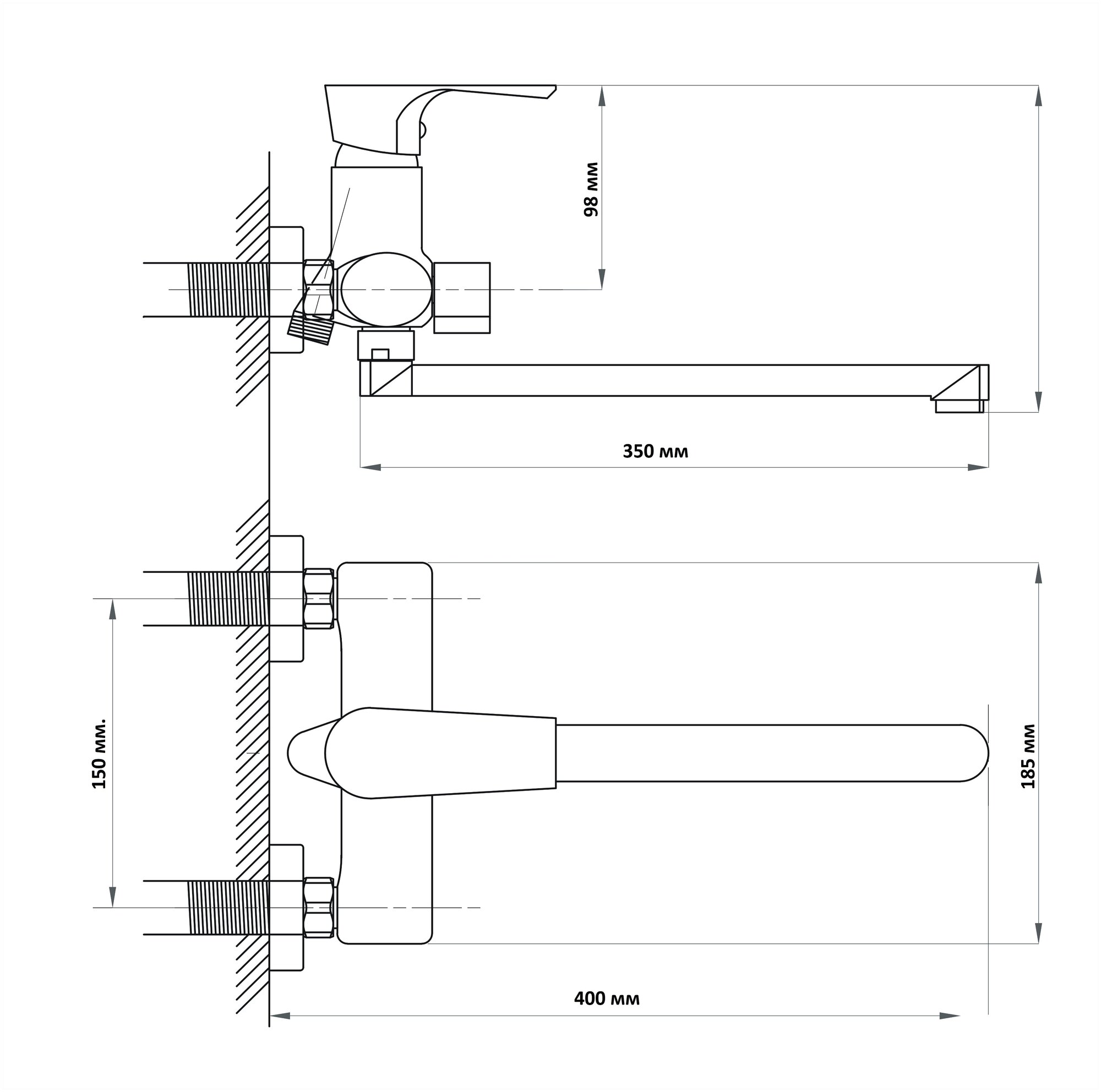 Смеситель для ванны и умывальника 35к ПСМ-200-2 200 тип см-вуорншла, эксцентрики "евро", хром