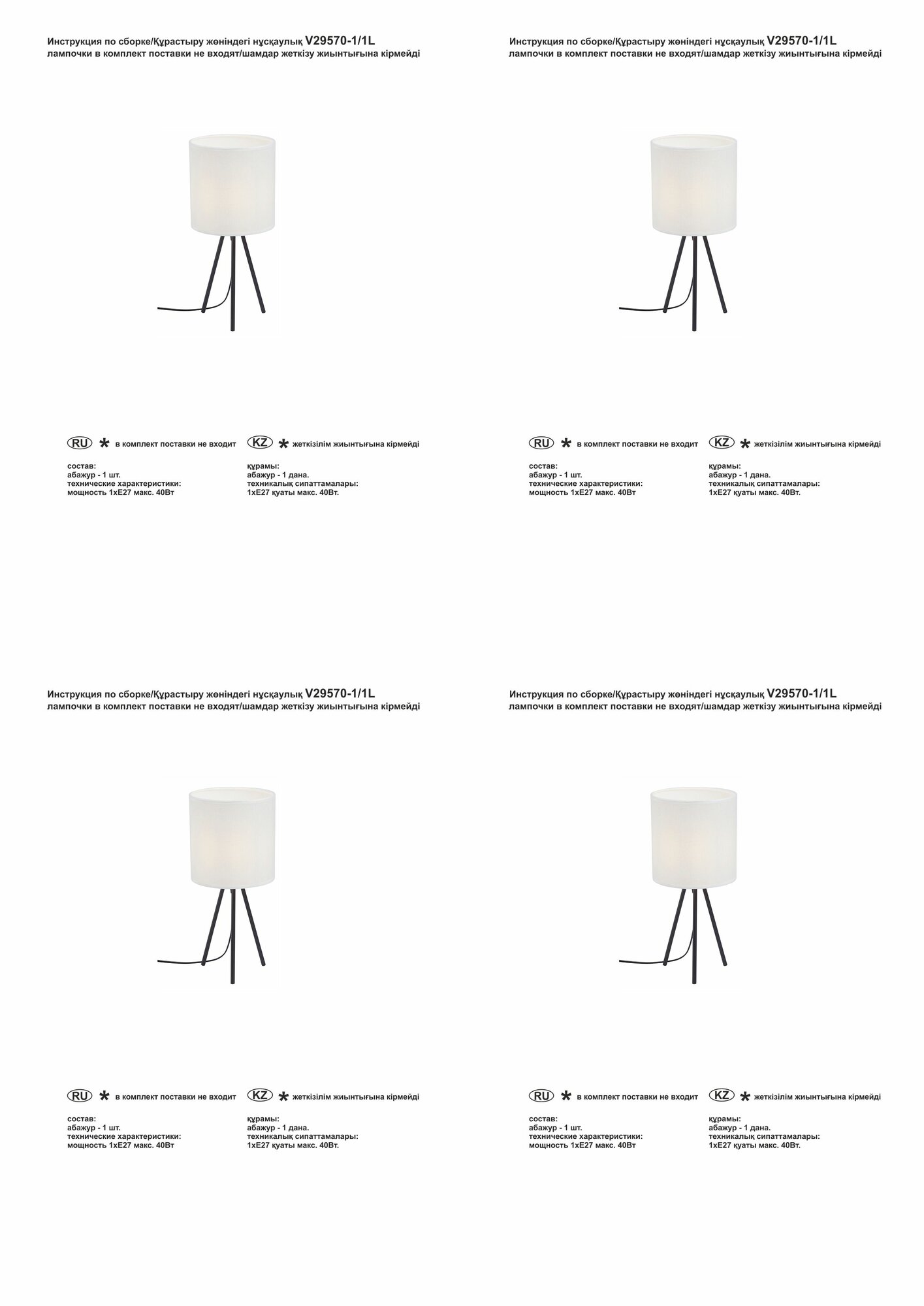 | Количество ламп | 1 шт |