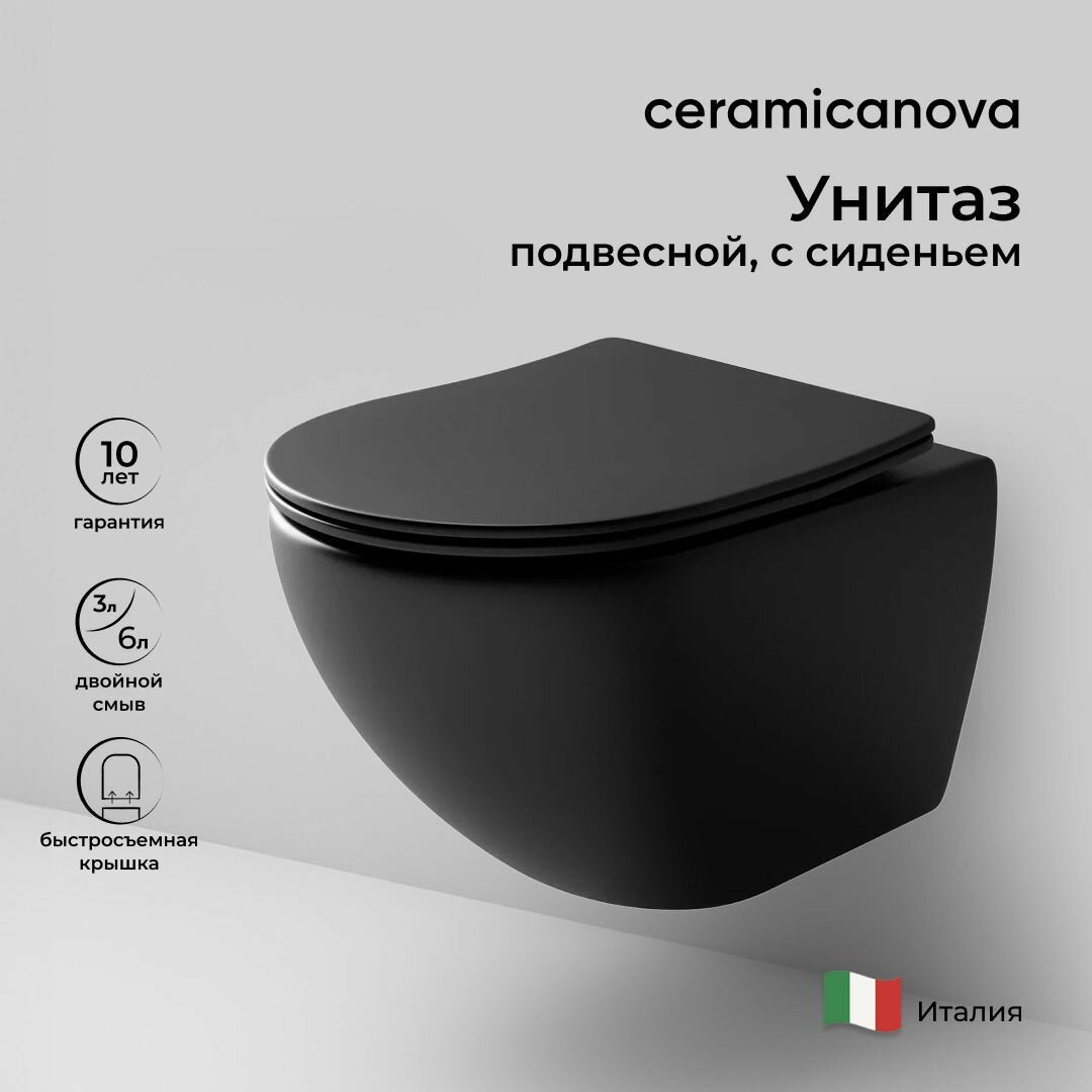 Ceramica Nova Подвесной унитаз Ceramica Nova Metropol Rimless CN4002MB черный матовый, сиденье микролифт