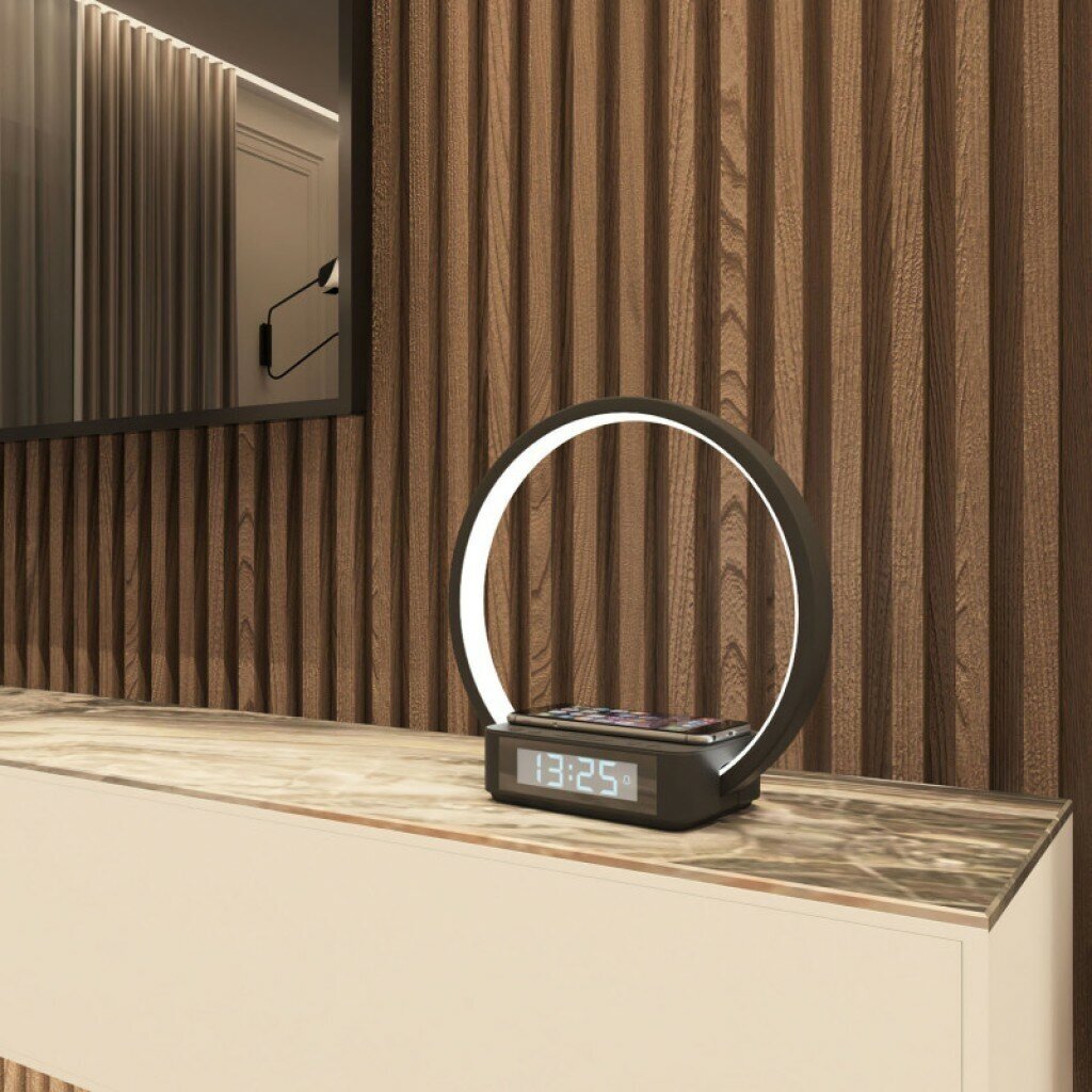 Сенсорная светодиодная настольная лампа с беспроводной зарядкой и будильником 80505/1 белый