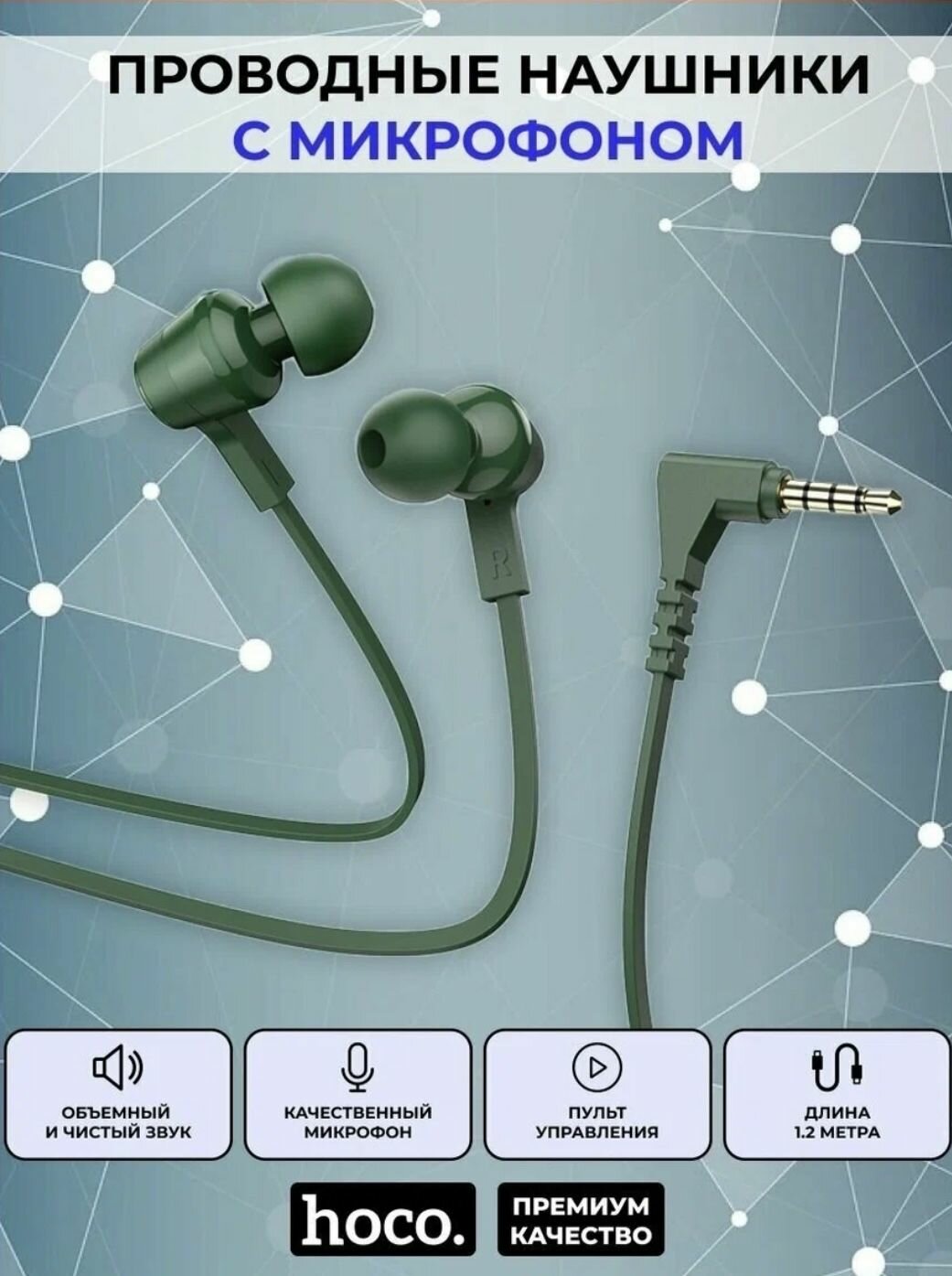Наушники вкладыши с микрофоном Hoco M86 Army Green, мобильная гарнитура, зеленые