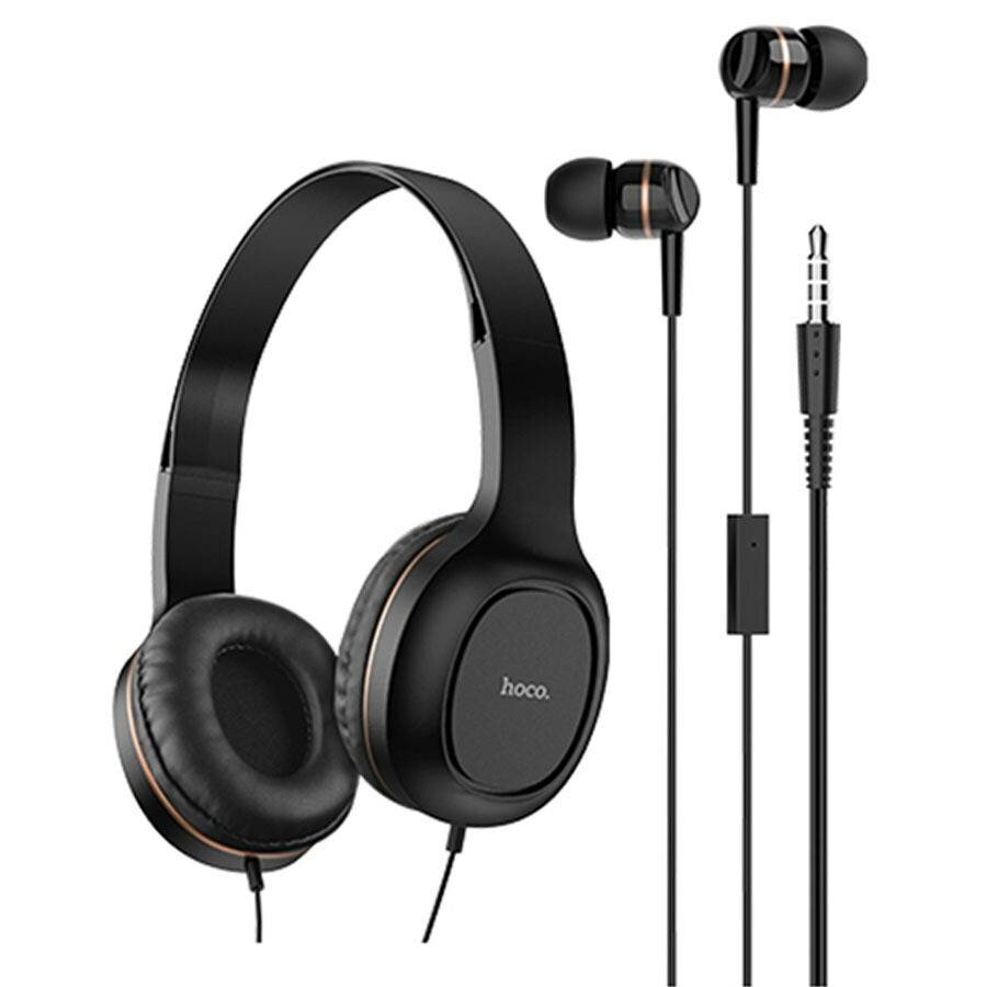 Комплект наушников Hoco W24, проводные, накладные + вакуумные, проводные, золотистые, цвет чёрный