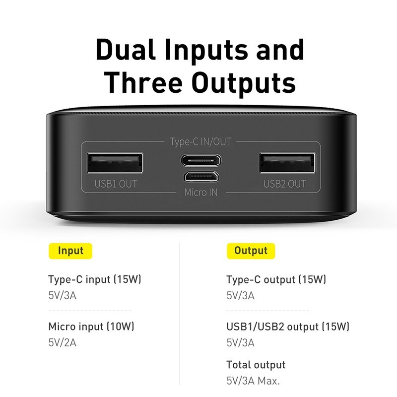Портативное зарядное устройство Baseus, PPDML-J01, 15W, 20000mAh, черное