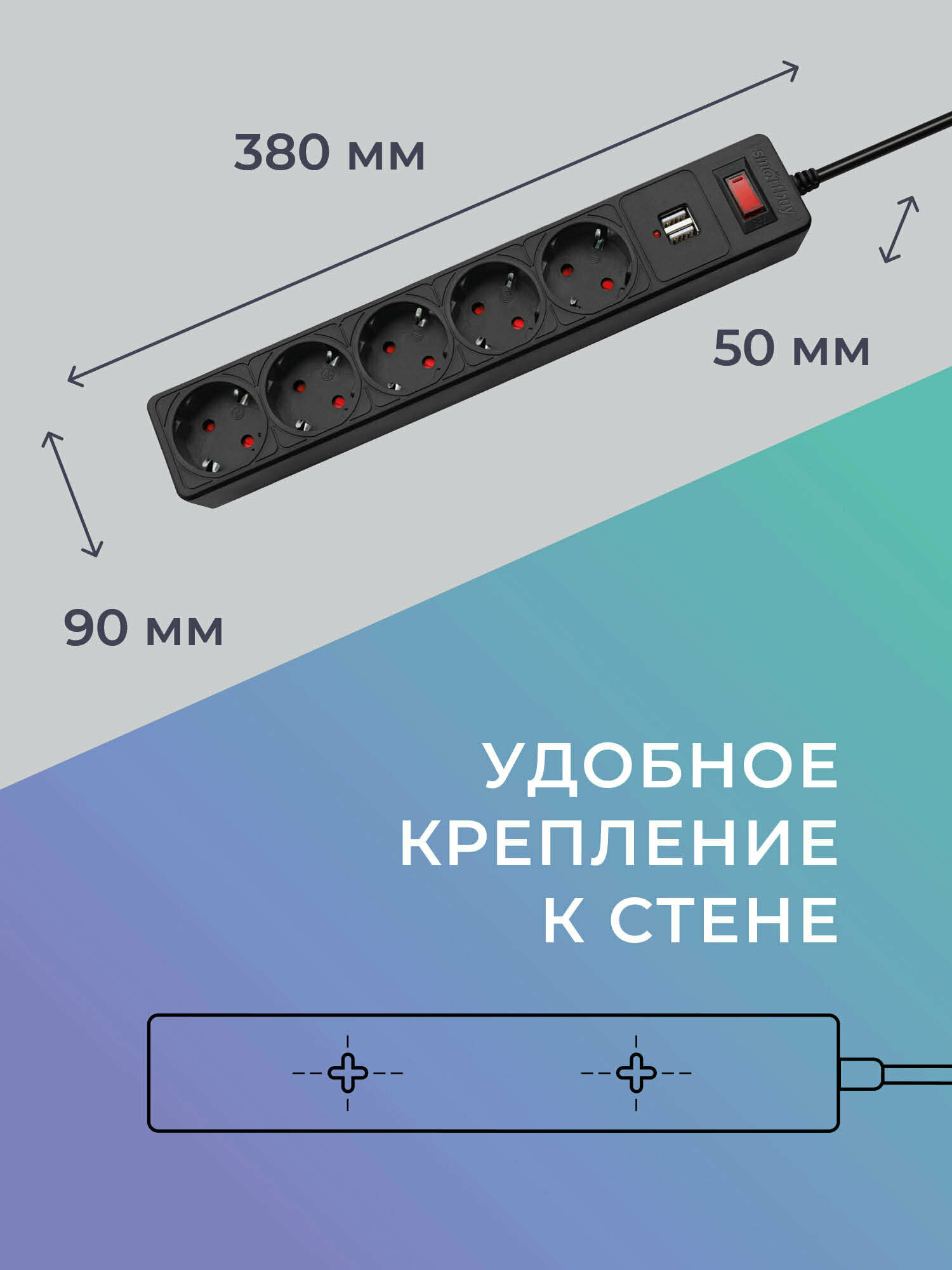 smartbuy (sbsp-18u-k) - 5 роз х 1,8 м - черный + 2usb