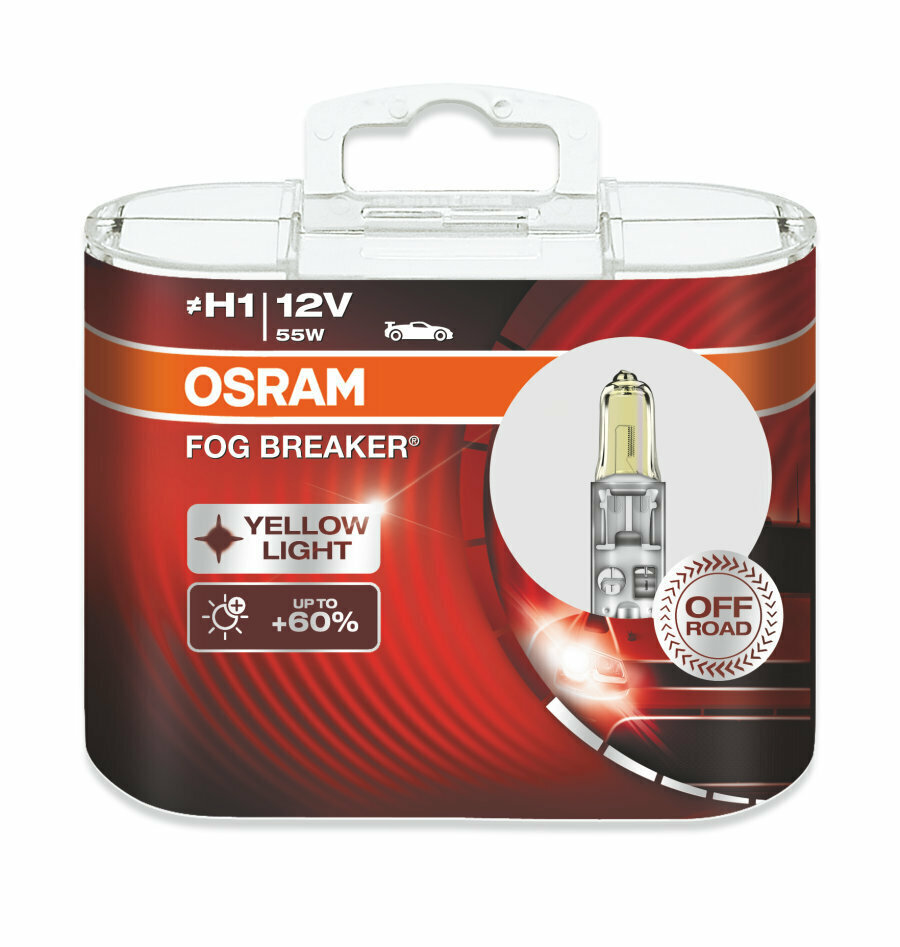 Лампа H1 12V- 55W +60% OSRAM (2шт) FOG BREAKER автомобильная, лампочки на авто (62150FBRDUOBOX62150FBRHCB)