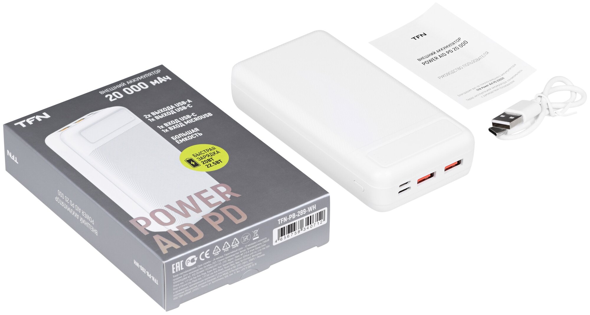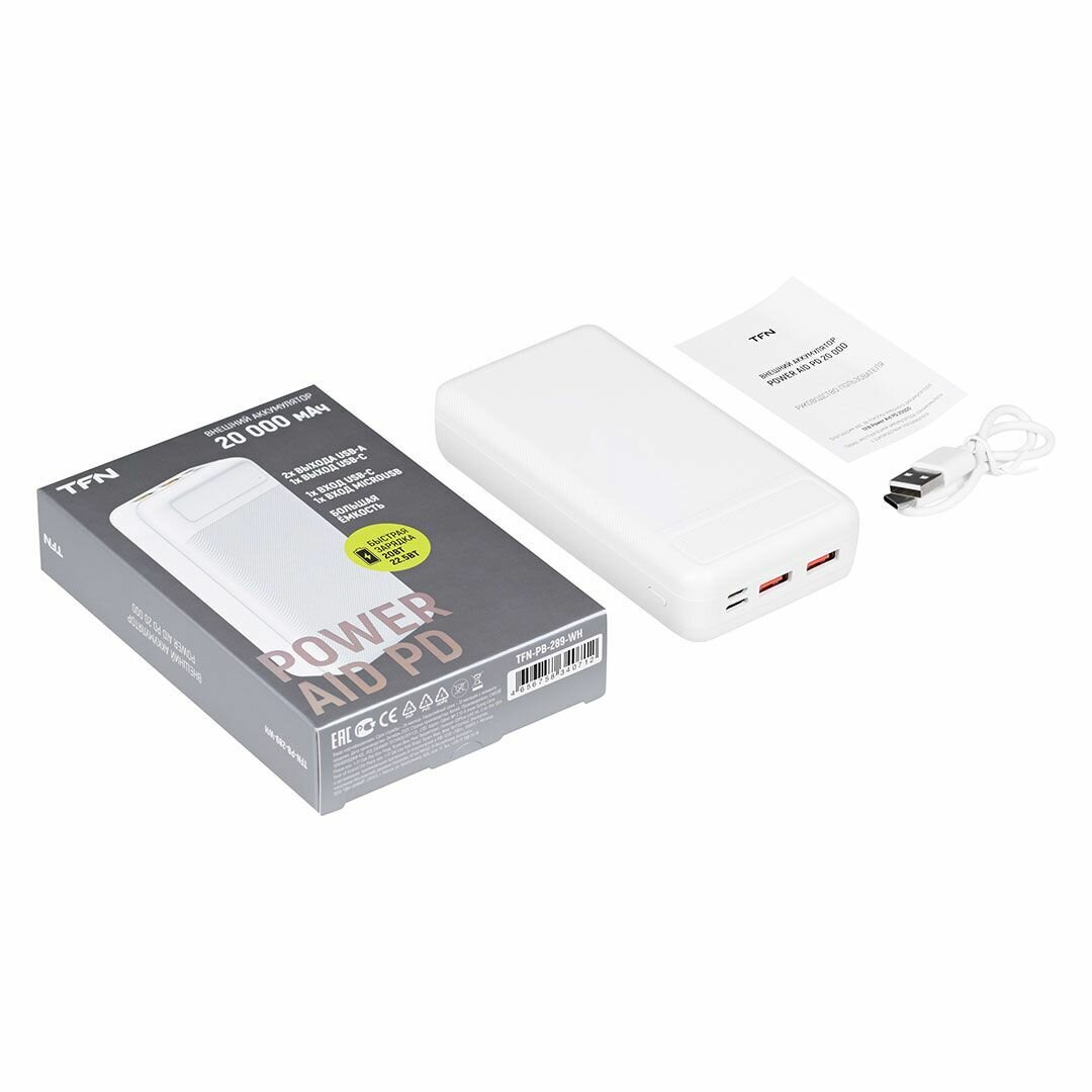 Портативный аккумулятор TFN PowerAid PD 20, белый, упаковка: коробка