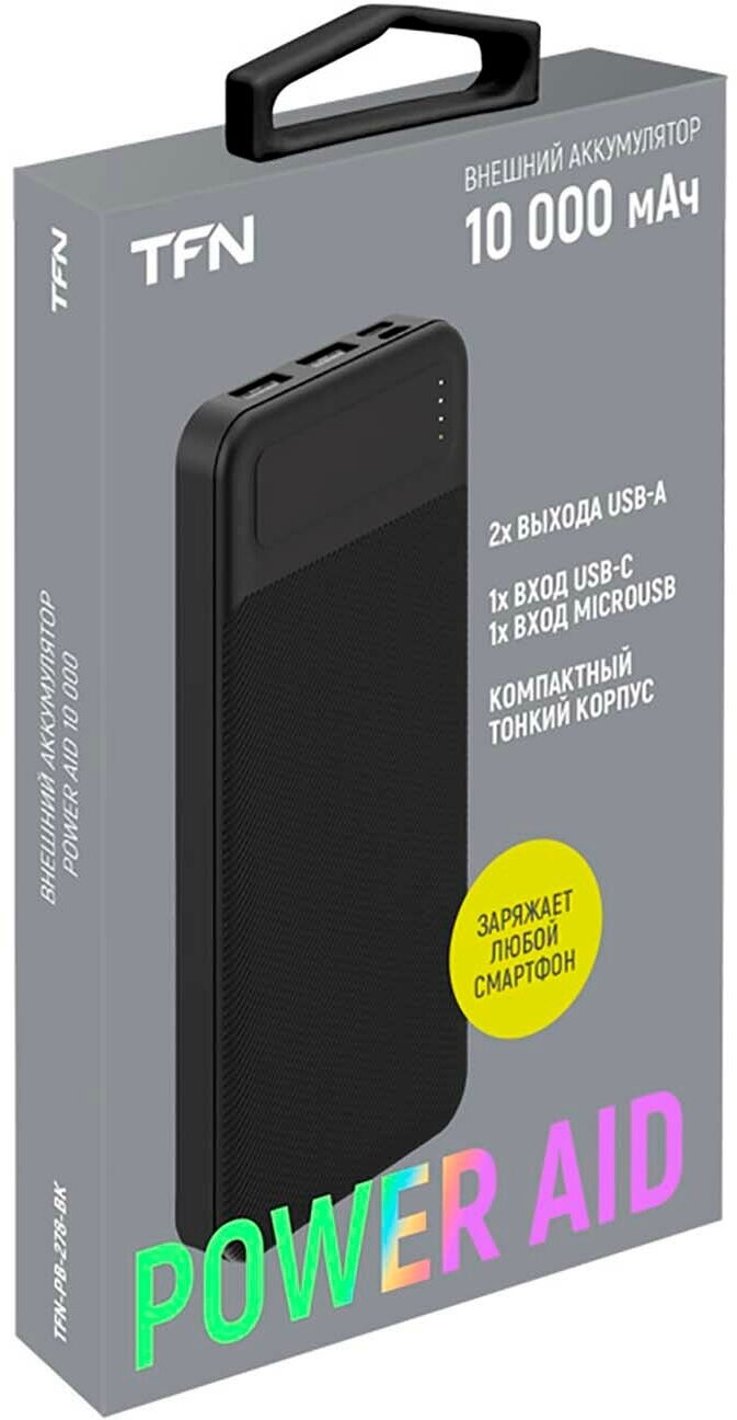 Купить Портативный аккумулятор TFN PowerAid PB-278 10000 мАч, черный, упаковка: коробка