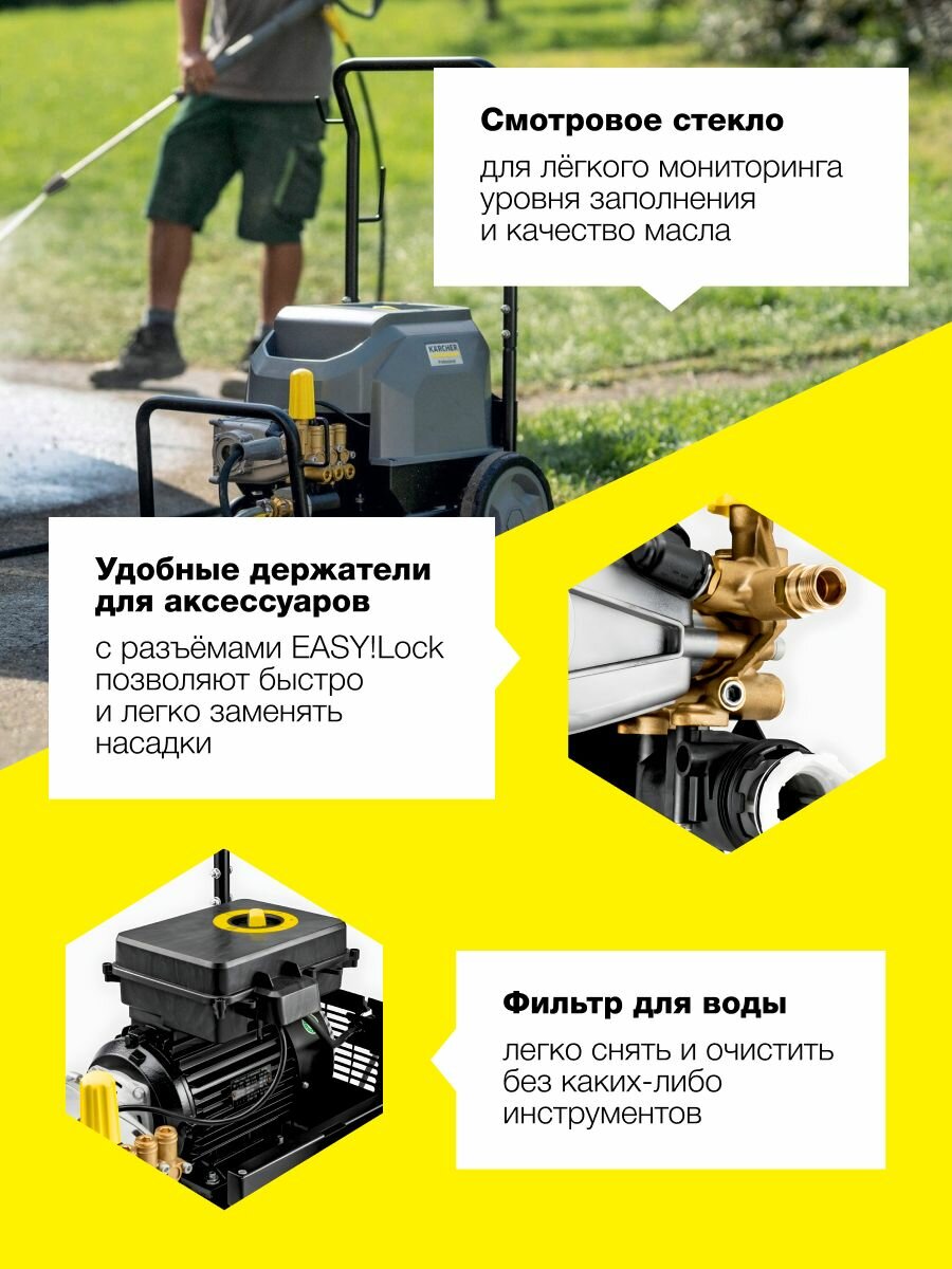 Мойка-аппарат высокого давления Karcher HD 6/15-4 M Classic (1.367-900.0) профессиональный, 150 бар, 600 л/ч, до 60 С, 4-полюсный двигатель, 3-поршневая аксиальная помпа, шланг 10м