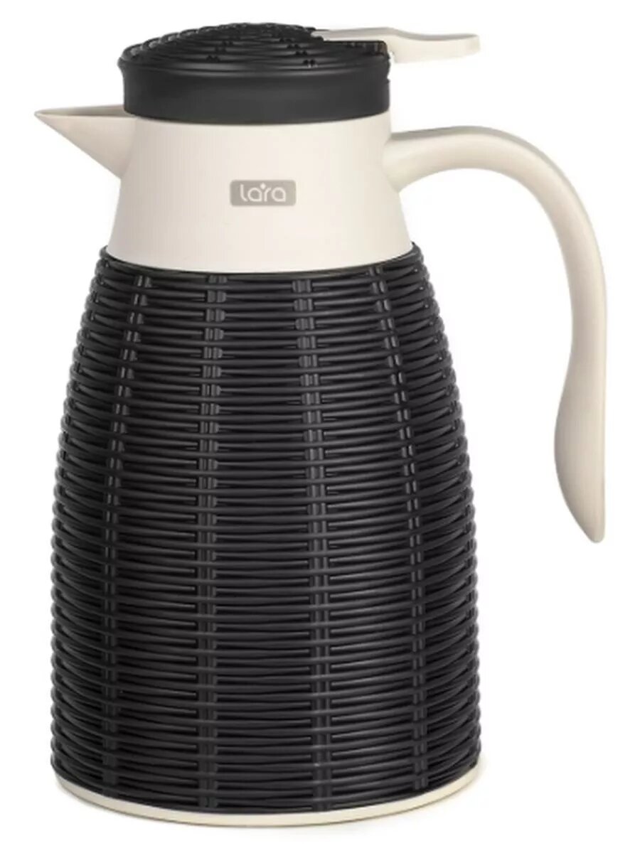 Lara LR04-80 термос Black - 1000 мл, стеклянная колба, стилизация под ротанг, долгое сохранение