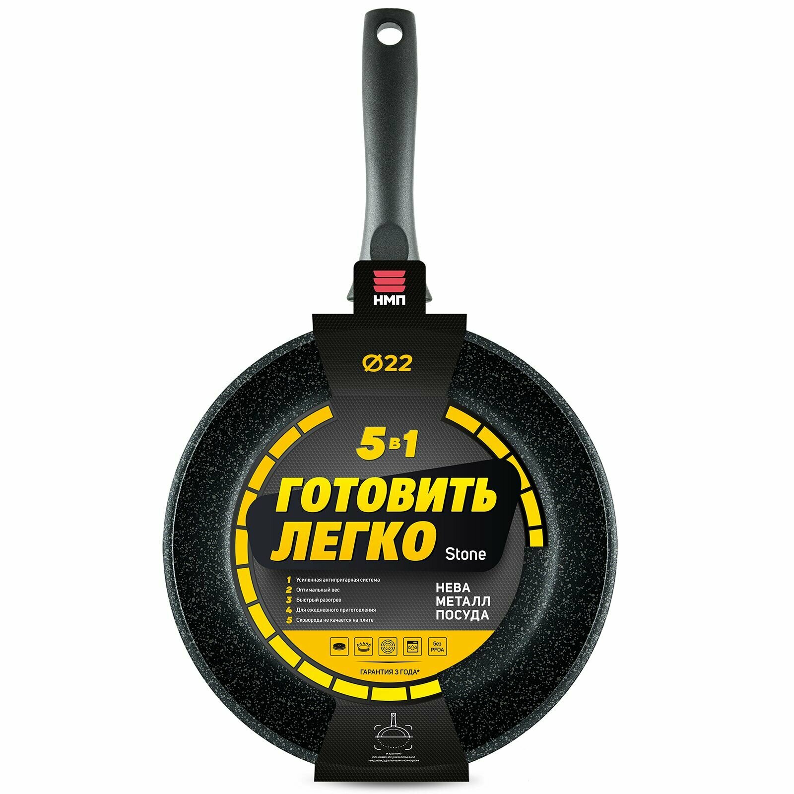 Сковорода 22 Нева Металл Посуда НМП "Готовить легко" stone н/р