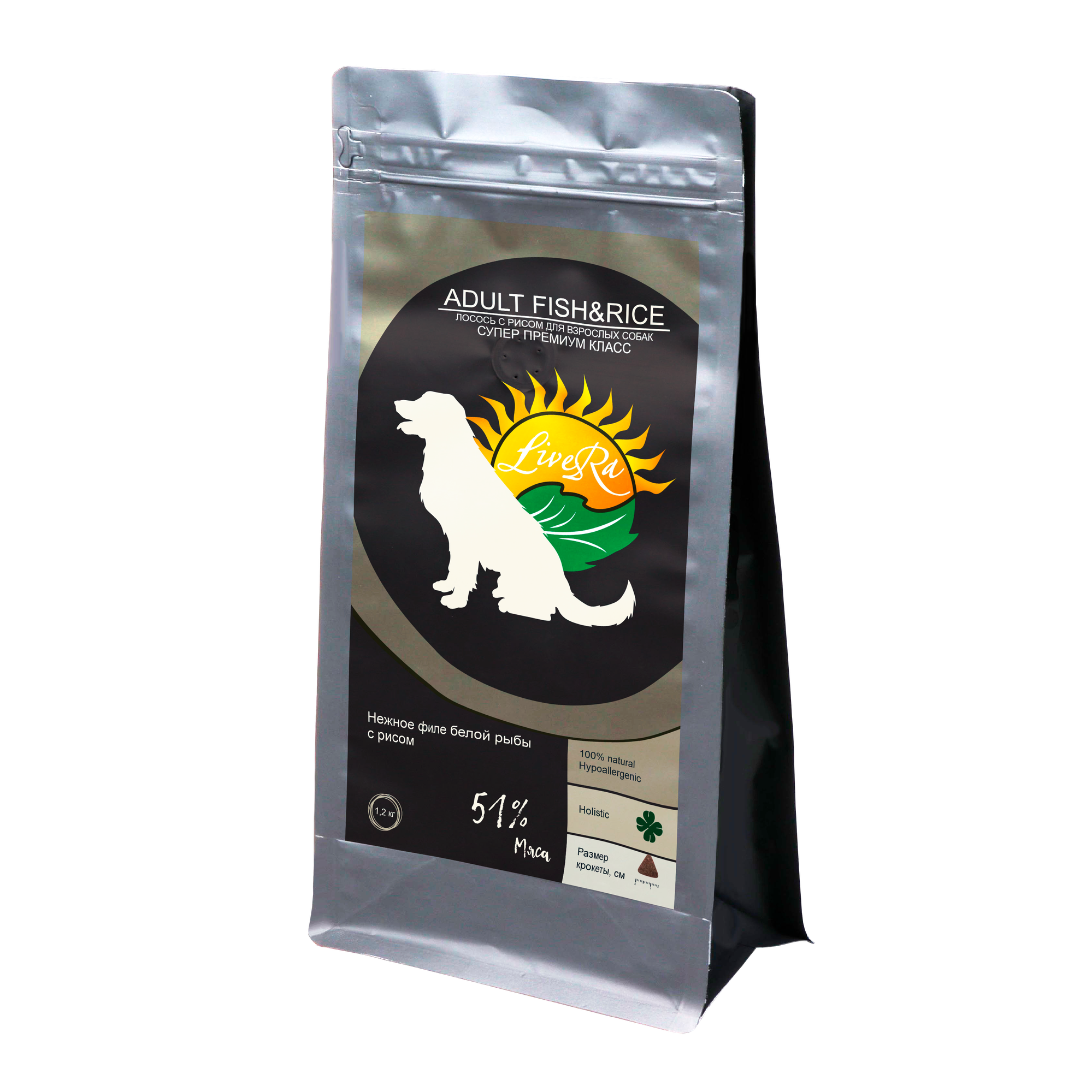 Купить LiveRa Полнорационный сухой корм для взрослых собак Adult Fish & Rice, 1,2 кг, нежное филе белой рыбы с рисом