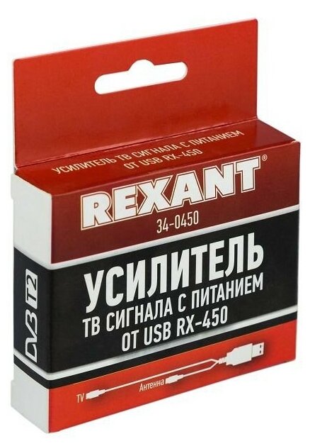 Усилитель ТВ сигнала с питанием от USB, RX-450 REXANT Артикул 34-0450