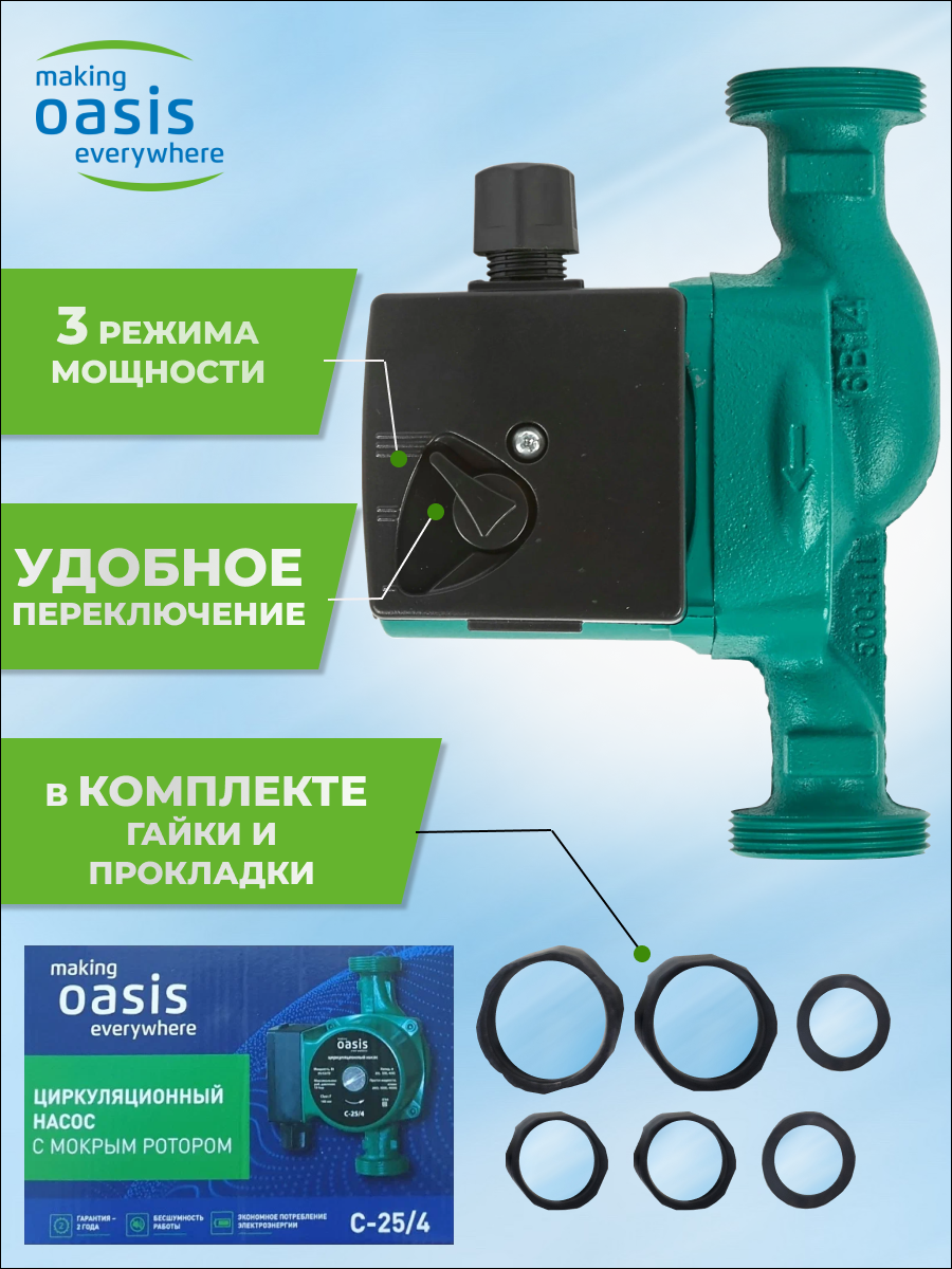 Насос циркуляционный для отопления making Oasis everywhere C-25/4, 72 Вт, напор 4 м, 40 л/мин