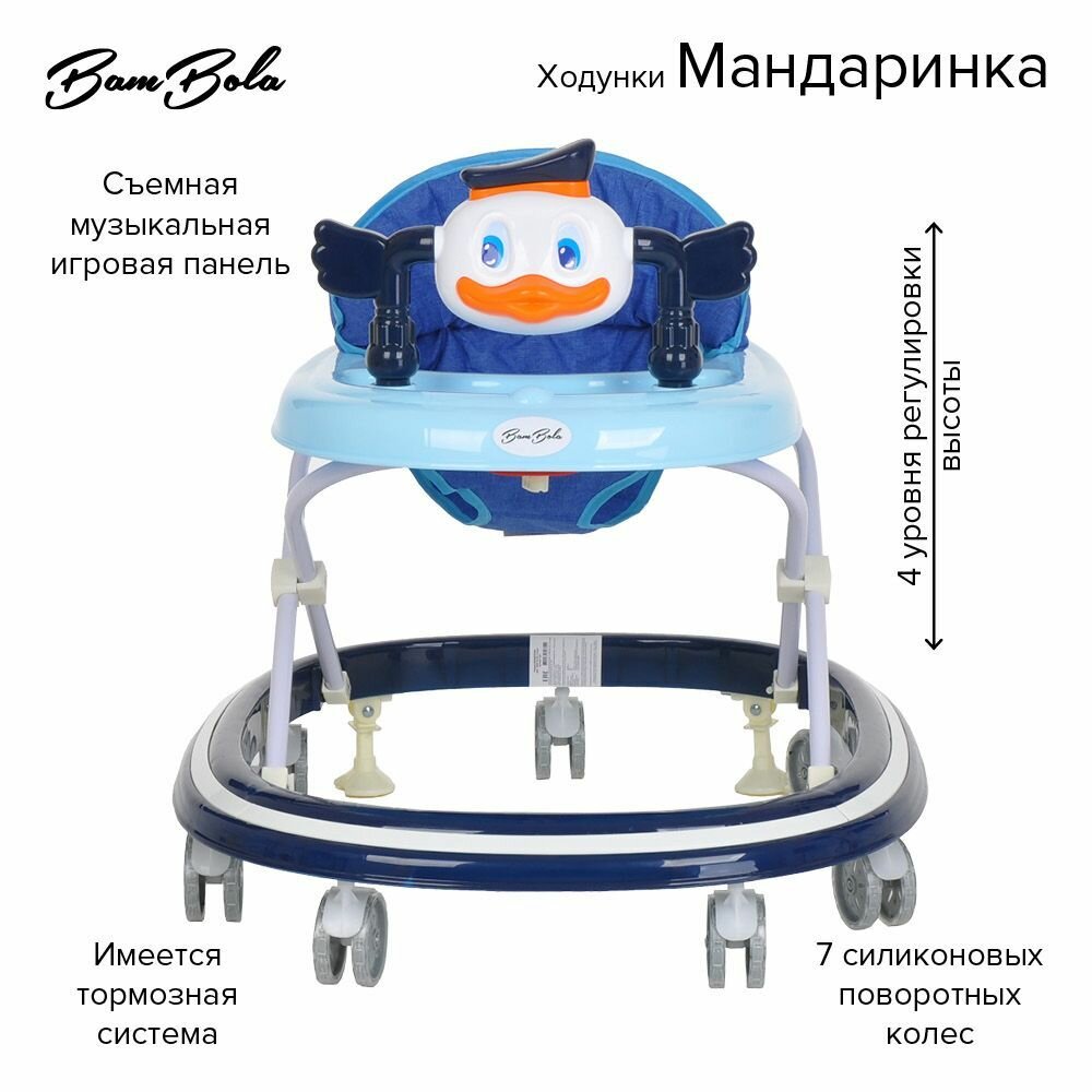 Купить Ходунки детские Bambola, каталка для малышей "Мандаринка Синий", игровая панель, звуковые эффекты, цвет синий