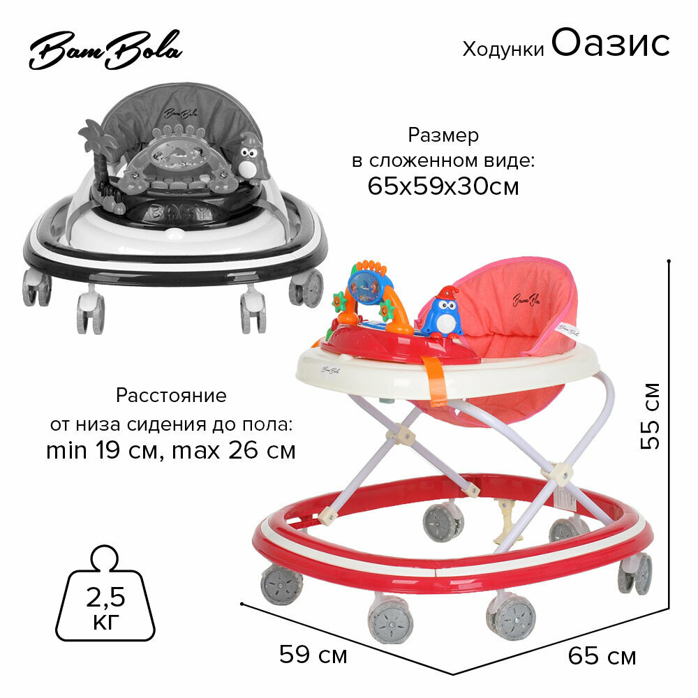 Ходунки детские Bambola Оазис с силиконовыми колесами Красный
