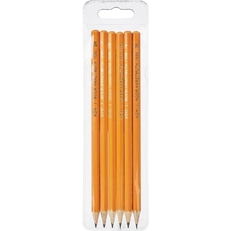 Карандаши чернографитные KOH-I-NOOR, набор 6 шт., 2Н, Н, НВ-2, В, 2В, пластиковая упаковка, европодвес, 1696006041TE