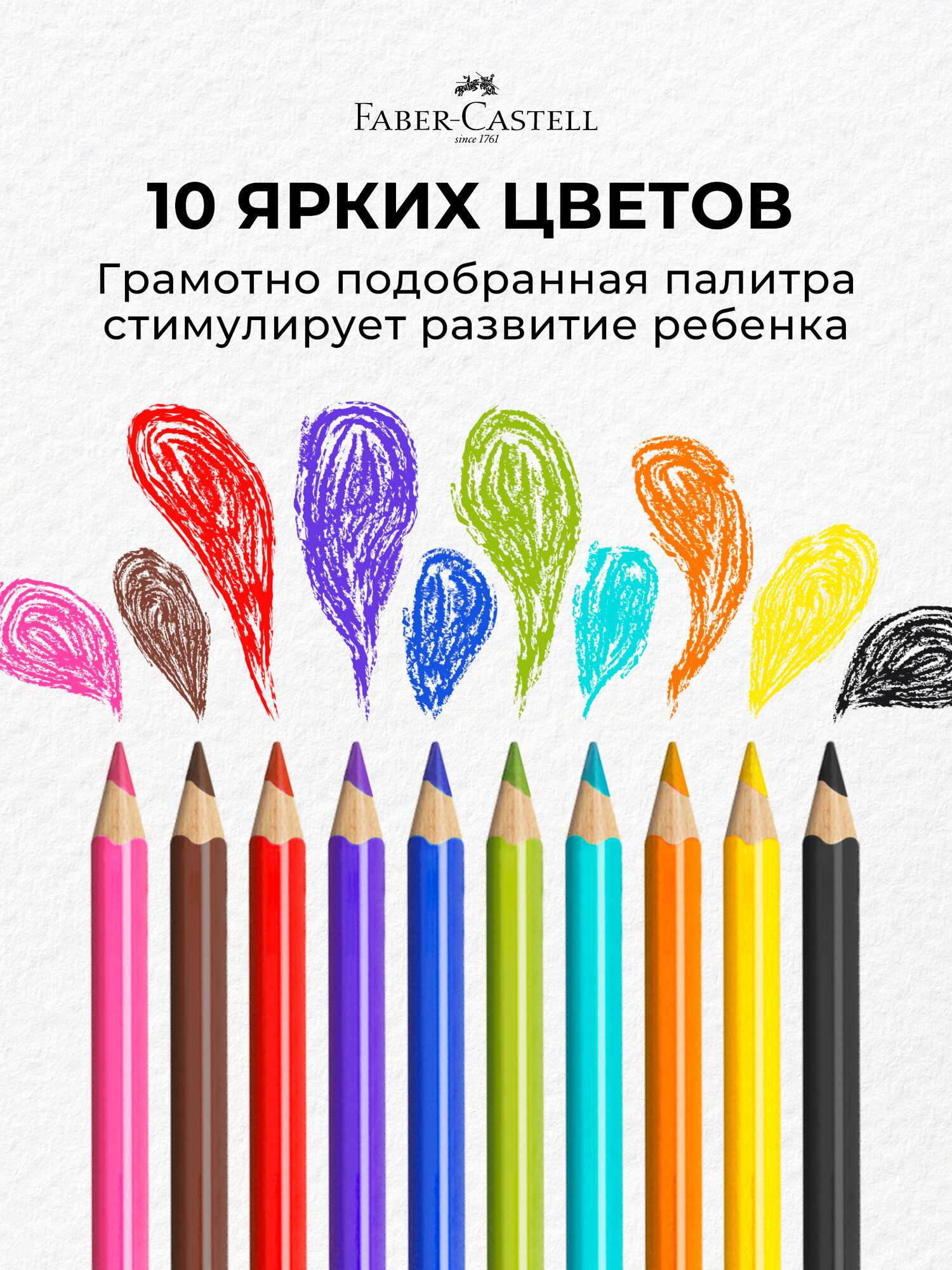 Карандаши Jumbo 10 цветов, Faber-Castell, трёхгранные, с точилкой, картонная коробка 2688888 .