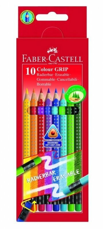 Карандаши цветные стираемые Faber-Castell "Grip", 10цв., заточен., картон, европодвес