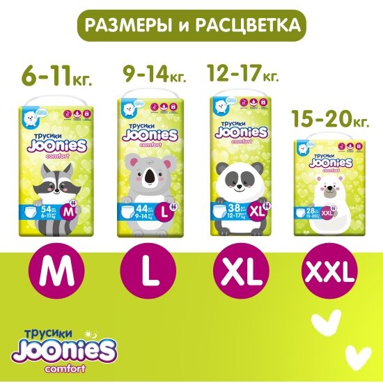 Подгузники-трусики JOONIES Comfort, размер M (6-11 кг), 54 шт