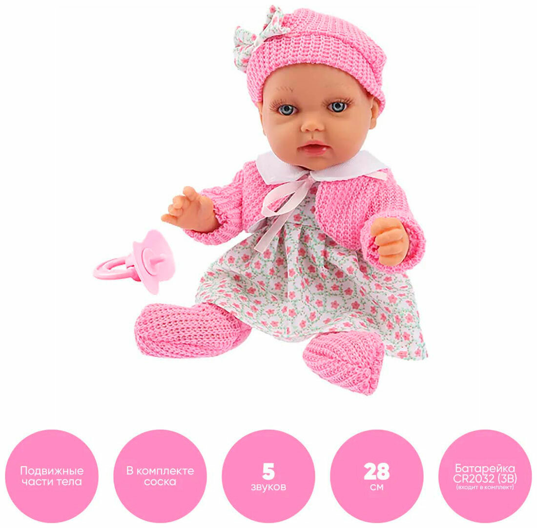 Пупс 1TOY Т14113 PREMIUM в платье и вязанном болеро со звуком 28 см