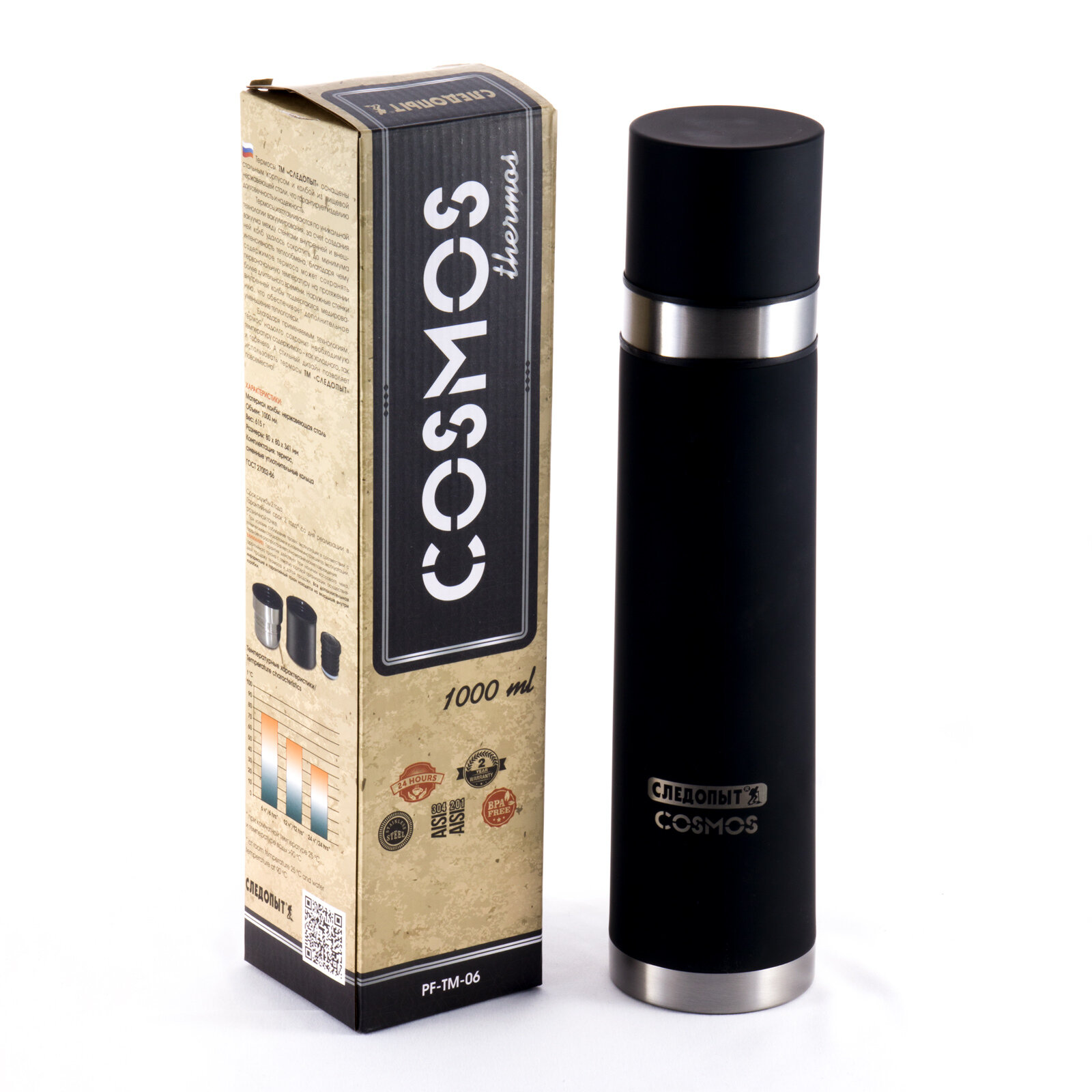PF-TM-06 Термос "следопыт-cosmos" с двойной крышкой, 1 л