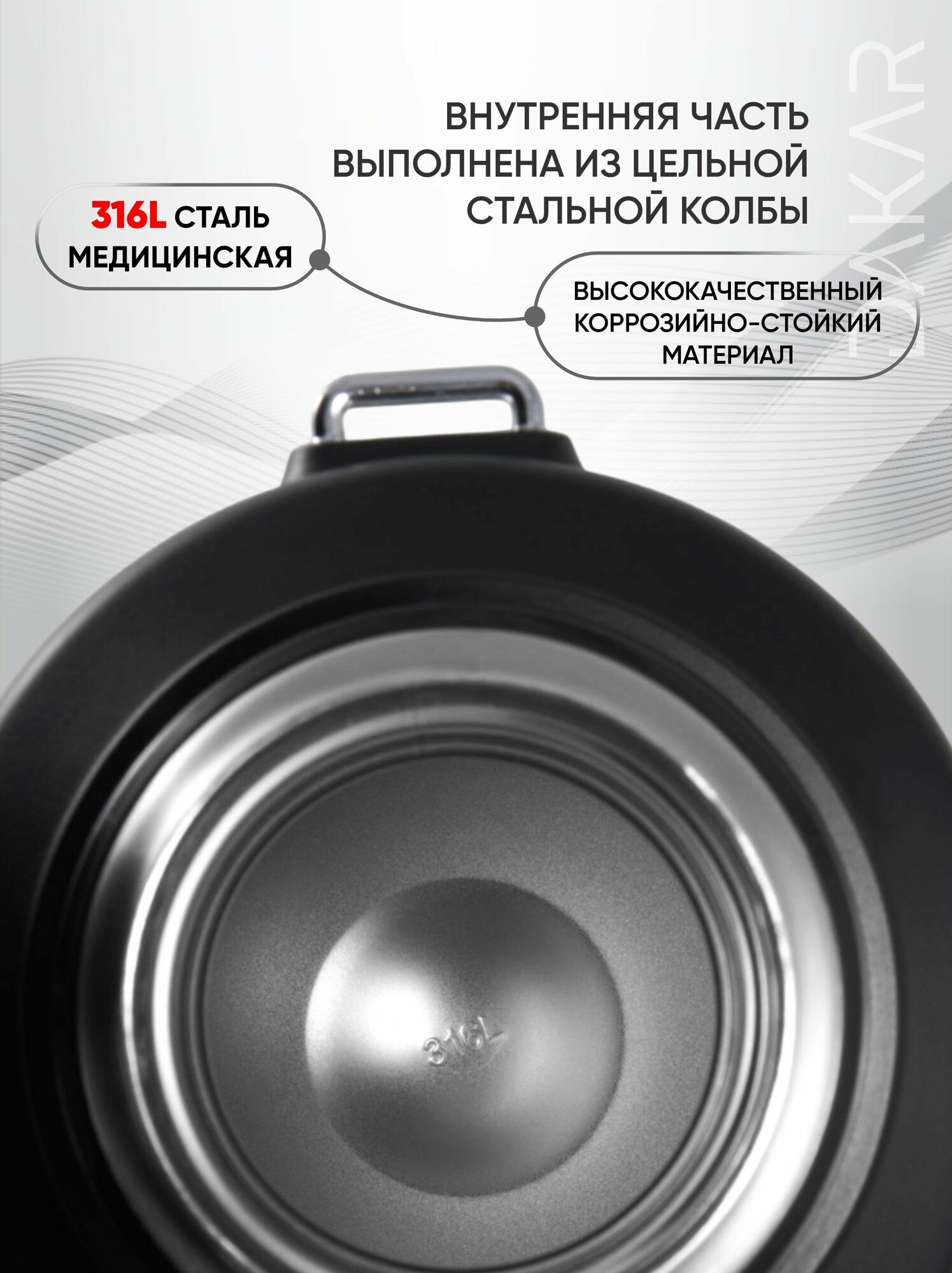 | Особенности | вакуумный / ручка на корпусе / крышка-чашка / с ситечком |