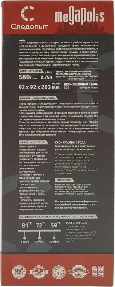 Термос вакуумный следопыт MEGAPOLIS 0,75 л