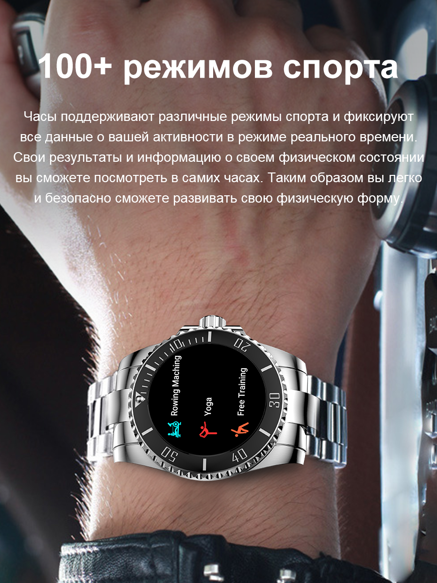 Смарт-часы умные наручные SMART PRESENT 15 мужские, круглые, с функцией телефона, водонепроницаемые, серебристые, металл интересное: