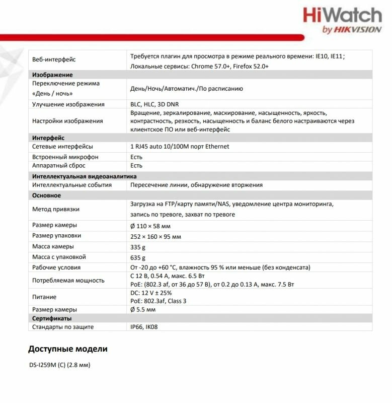 | Отзыв: | Камера с типичным для Hiwatch функционалом |