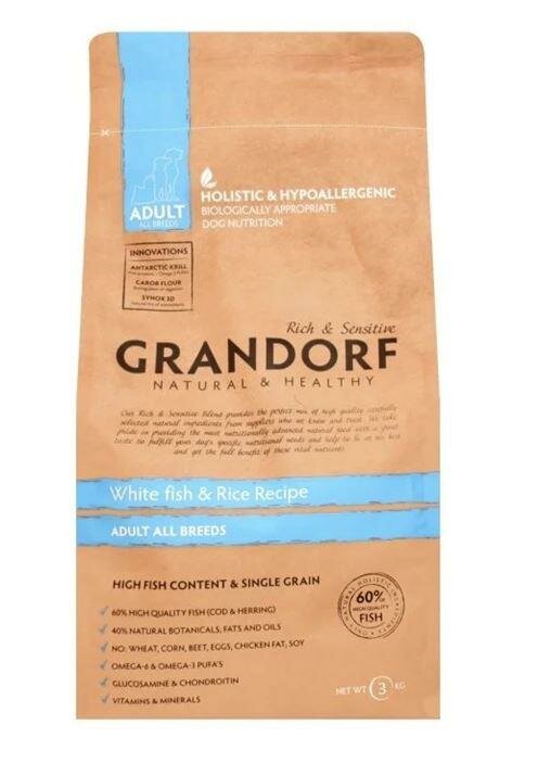 Сухой корм для собак средних и крупных пород GRANDORF белая рыба, 3кг (Бельгия)