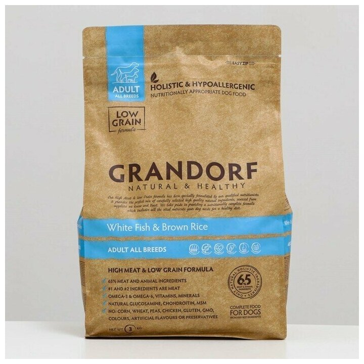 Сухой корм для собак Grandorf гипоаллергенный, Low Grain, белая рыба с рисом 1 уп. х 1 шт. х 1 кг
