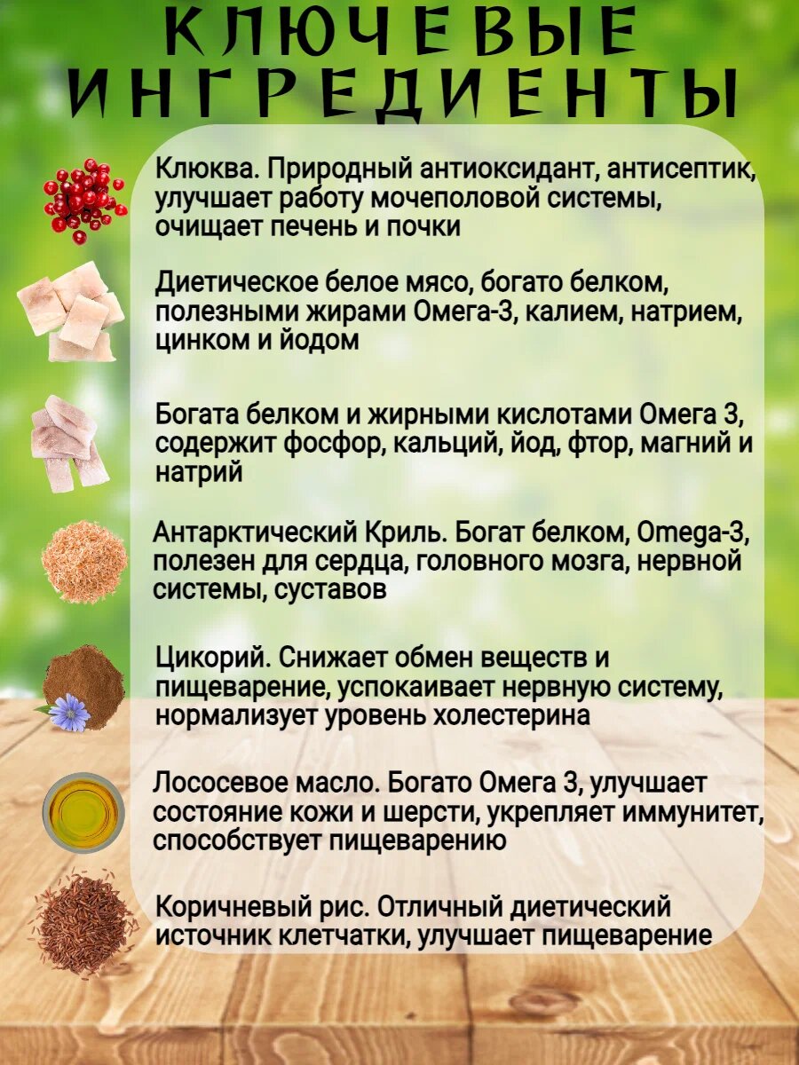 | Особые потребности | для ухода за ротовой полостью / при чувствительном пищеварении / для здоровья костей и суставов / для здоровья кожи и блеска шерсти / для профилактики МКБ / гипоаллергенный |