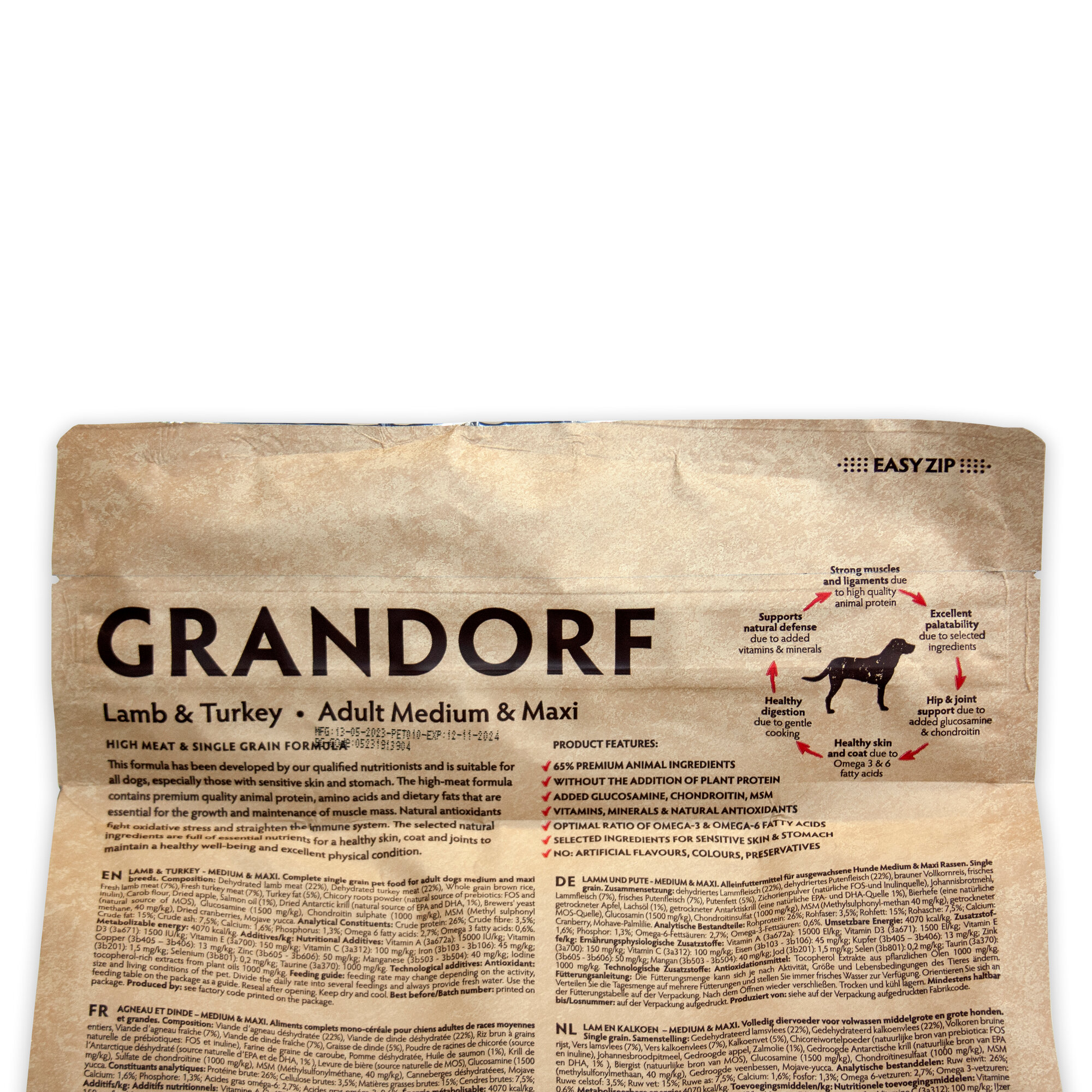 Сухой корм Grandorf для собак средних и крупных пород, с ягненком и индейкой - 1 кг
