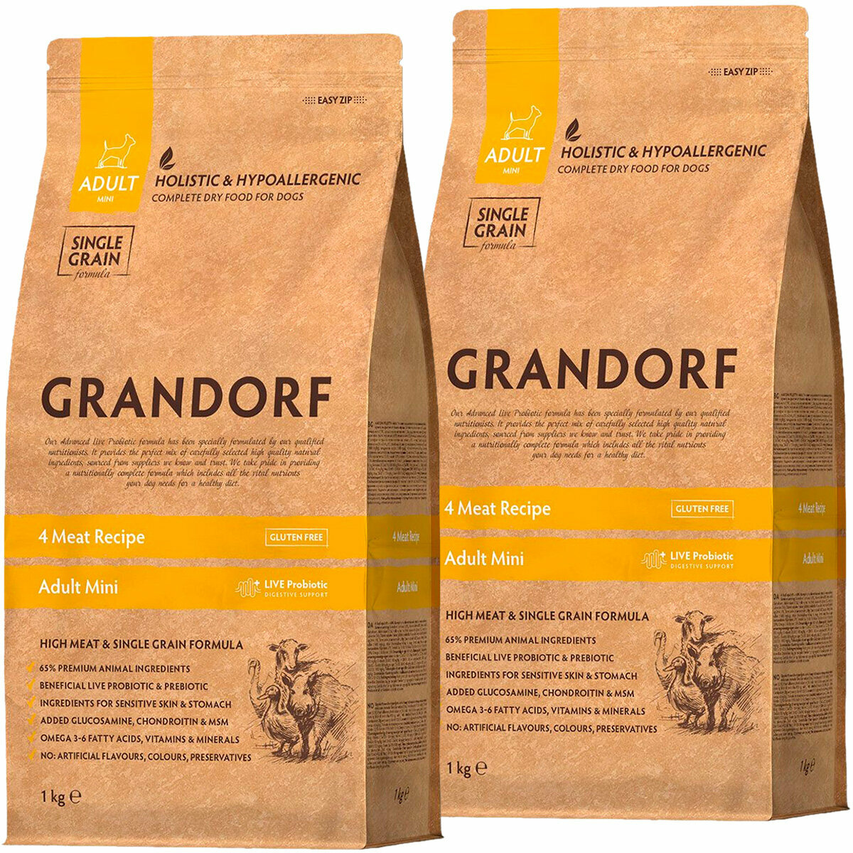 Купить GRANDORF SINGLE GRAIN DOG ADULT MINI 4 MEAT RECIPE низкозерновой для взрослых собак маленьких пород 4 вида мяса ягненок/индейка/утка/кабан (1 + 1кг)
