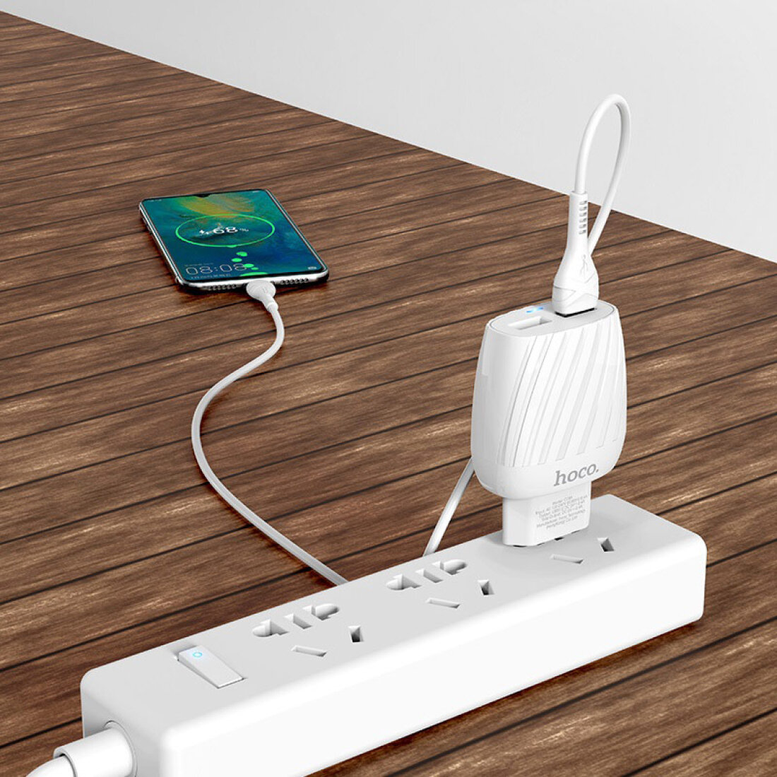 Сетевое зарядное устройство HOCO C78A Max energy 2xUSB, 2.4A, 10.8W, белый