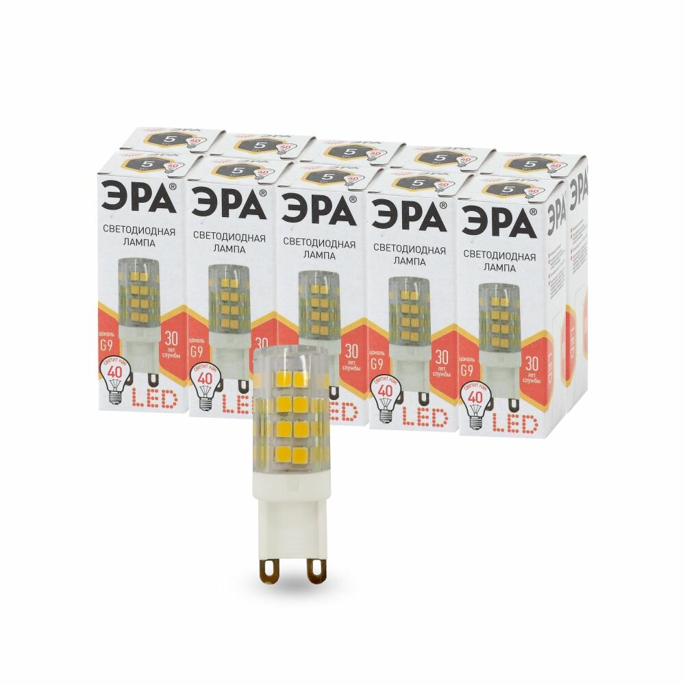Купить Лампочки светодиодные ЭРА STD LED JCD-5W-CER-827-G9 G9 5 Вт керамика капсула теплый белый свет набор 10 штук