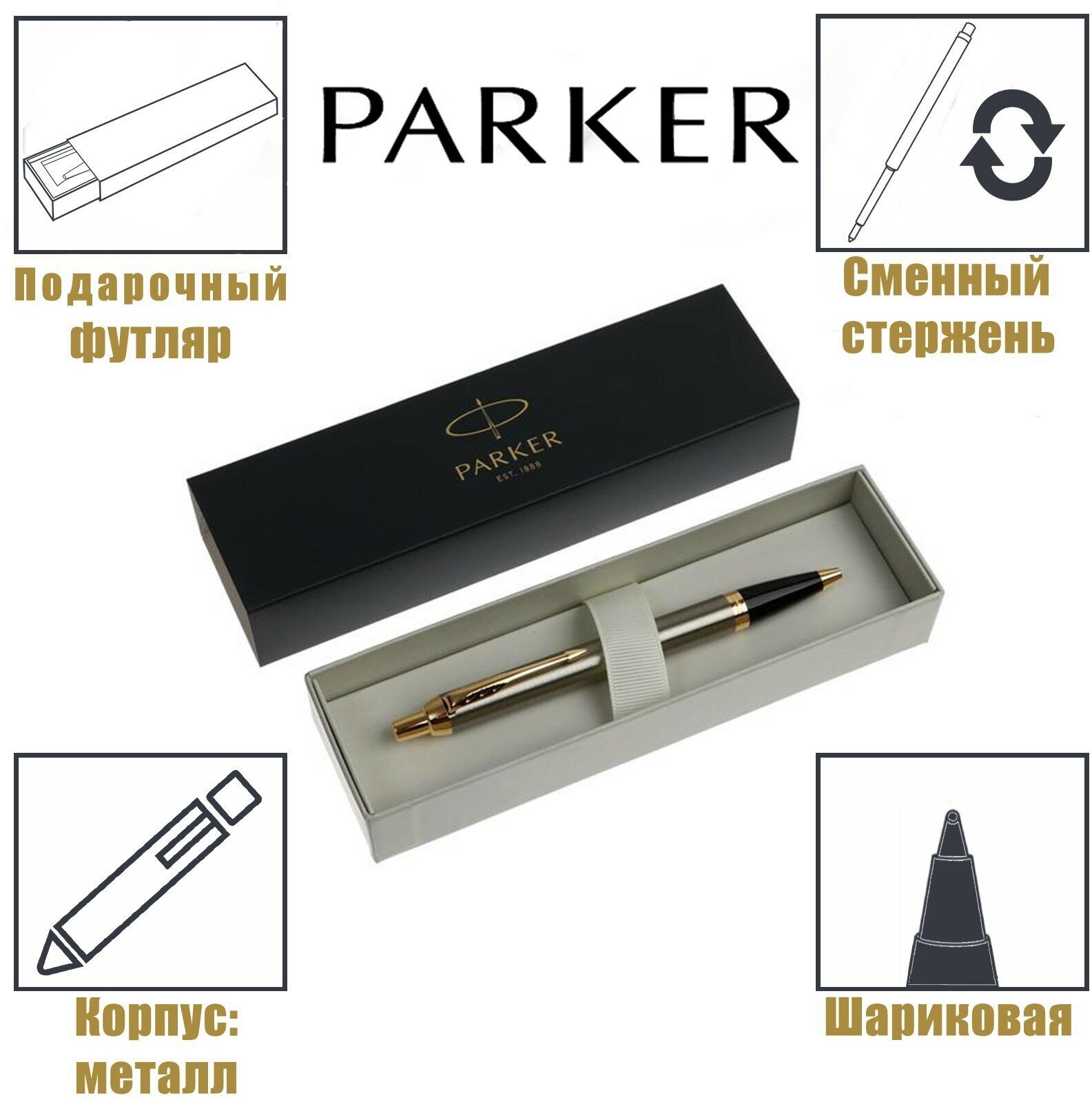 Ручка шариковая Parker IM Core K321 Brushed Metal GT M синие чернила (подарочная коробка) интересное: