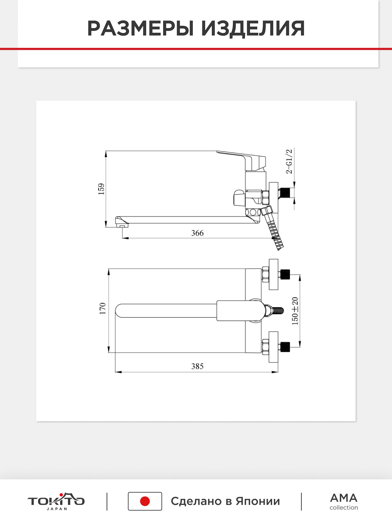 СохранитьСмеситель для ванной с длинным изливом с лейкой TOK-AMA-1015 серия AMA, латунный, хром интересное: