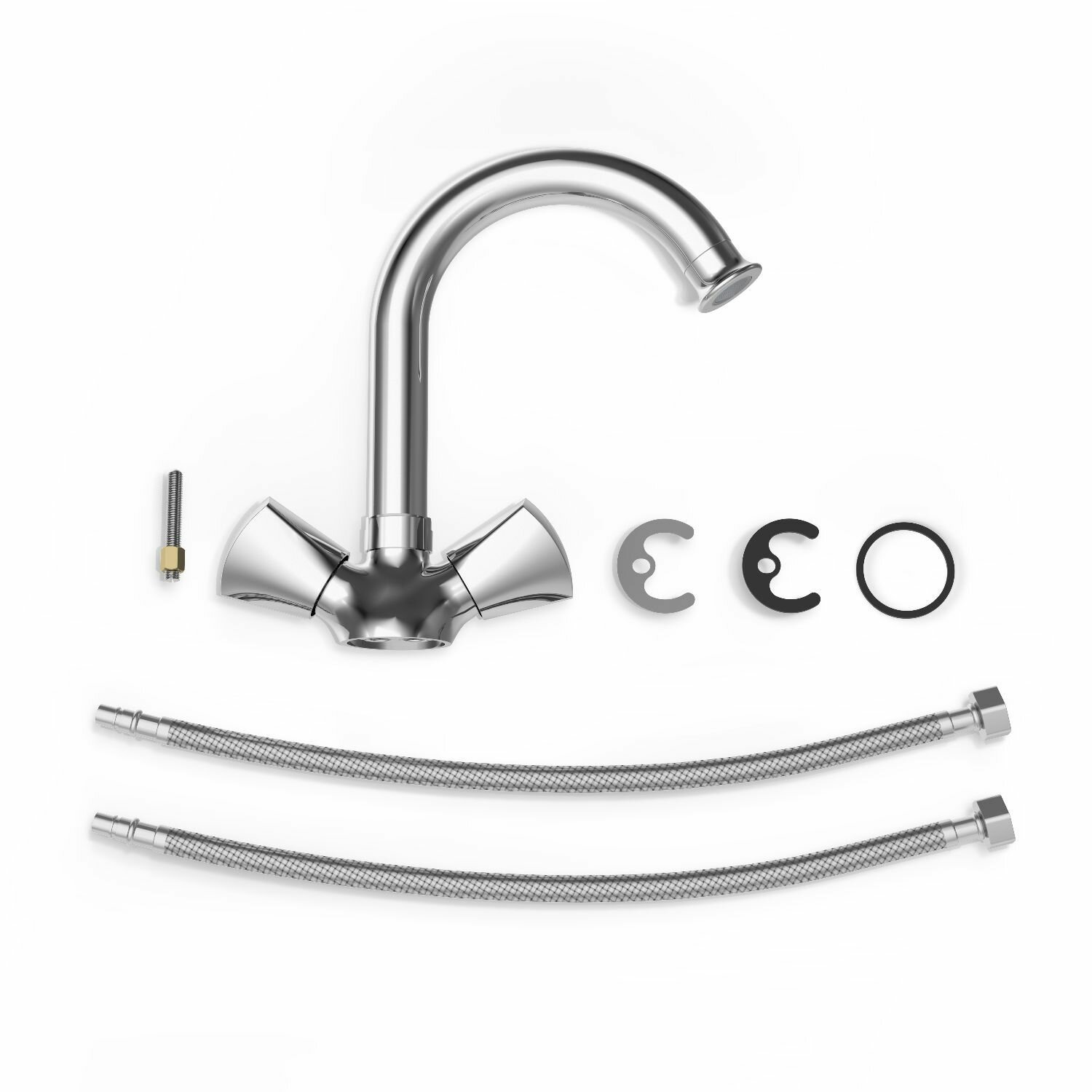 Смеситель для раковины Tokito Edo хром двухвентильный с поворотным изливом (TOK-EDO-1011)