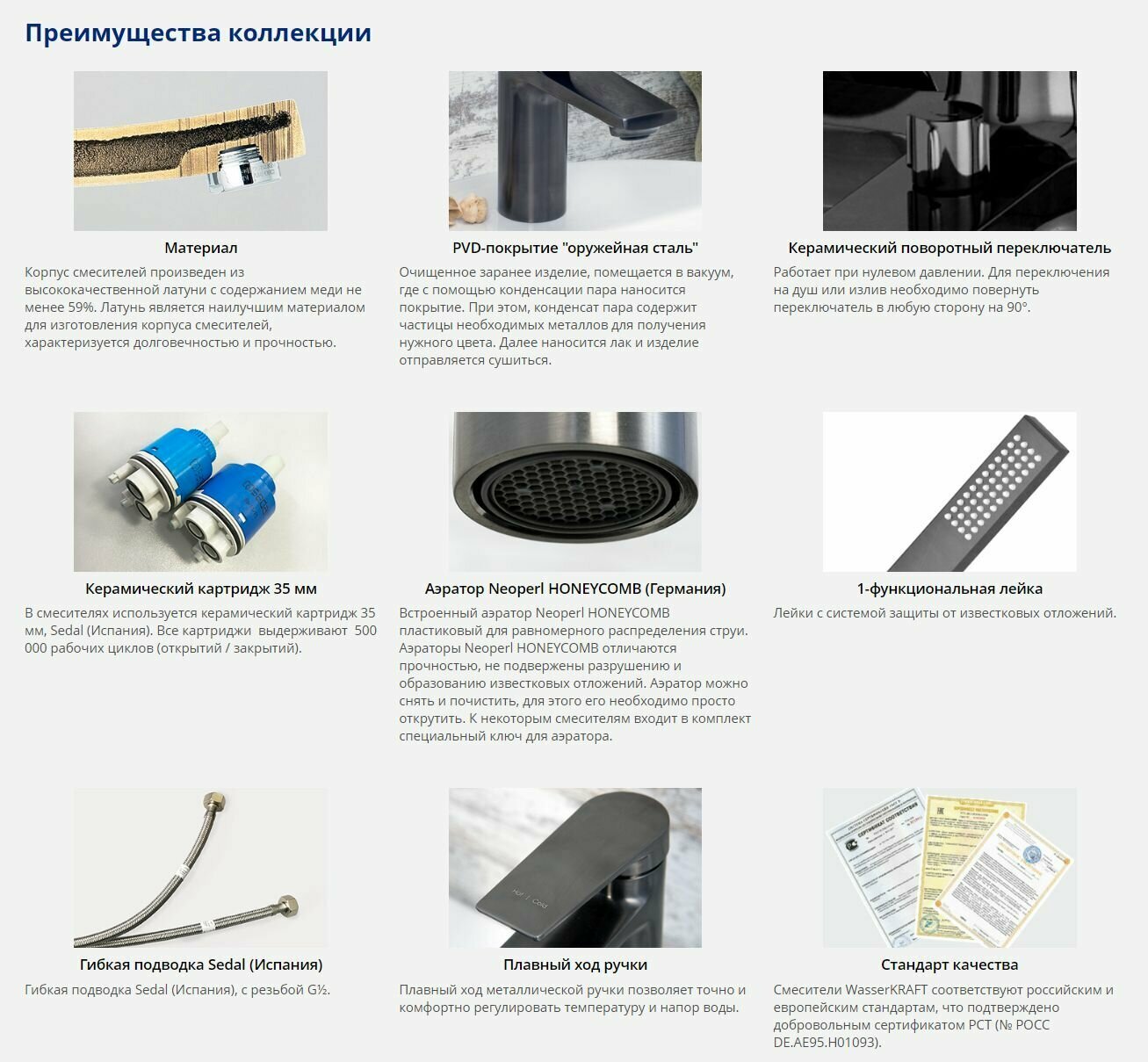Смеситель для раковины WasserKRAFT 8403H Wiese PVD-покрытие оружейная сталь интересное: