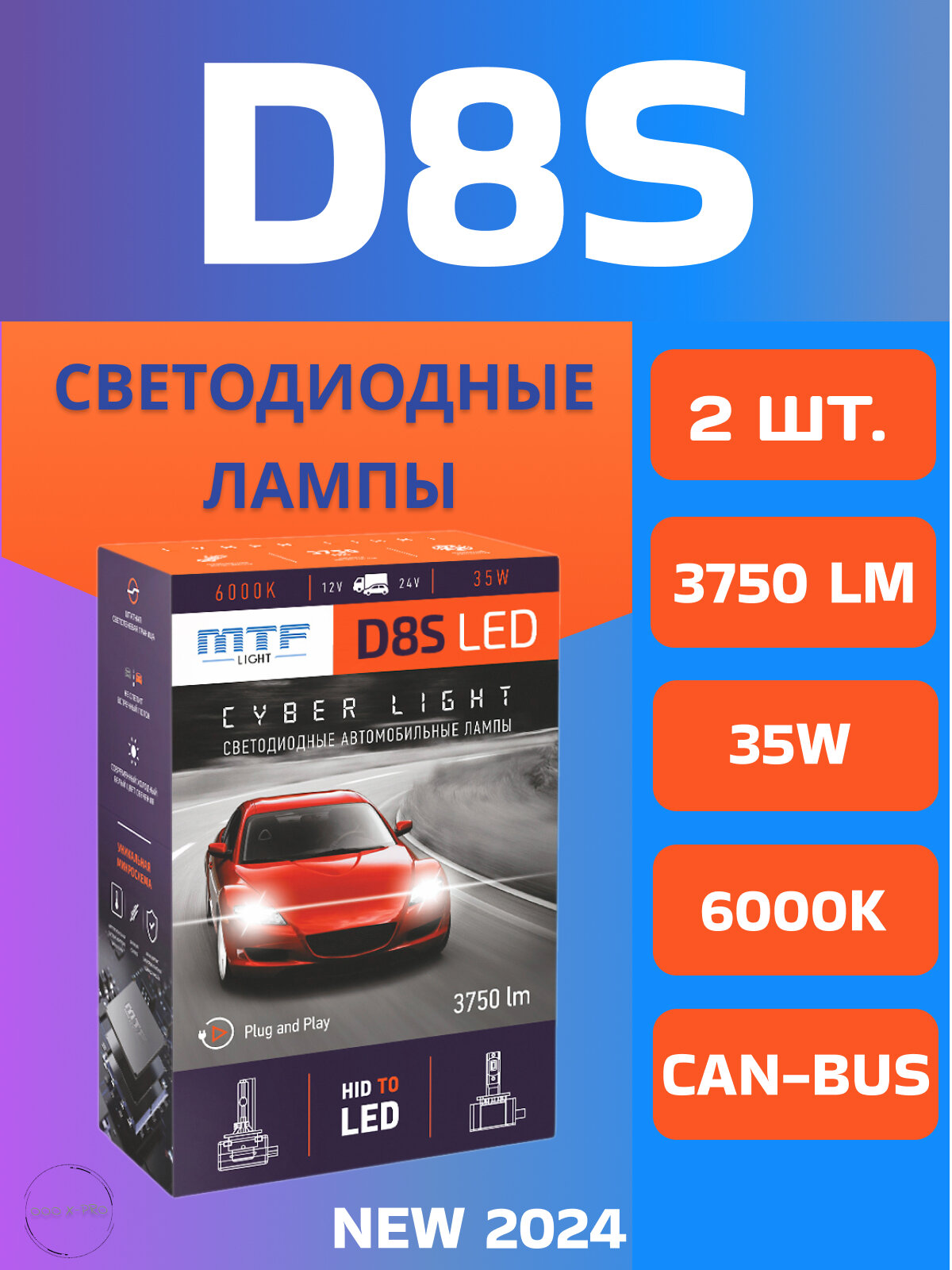 Светодиодные лампы MTF light Cyber Light PRO D3S 12-24V 35W 4250Lm 6000К (2 лампы)